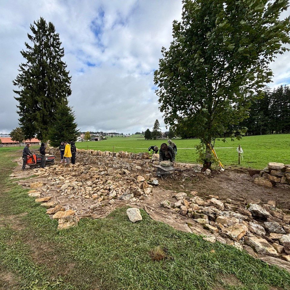 Die Erneuerung der rund 250 Meter Trockensteinmauern auf der Station „Les Murs“ in Les Bois ist abgeschlossen. Der Name des ursprünglichen Bauernhofs aus dem Jahr 1825 – „Les Murs“ („die Mauern“) – verpflichtet, und so haben wir auch dieses Projekt mit viel Freude und Elan umgesetzt.
