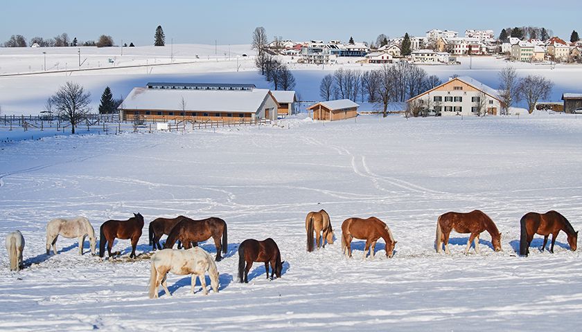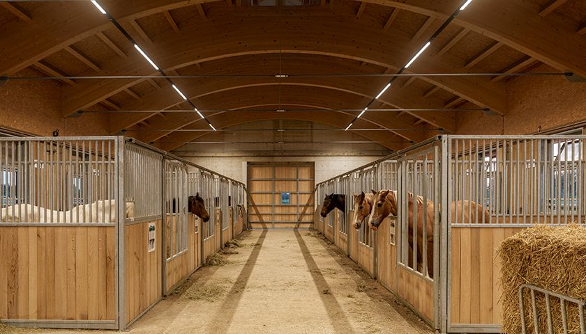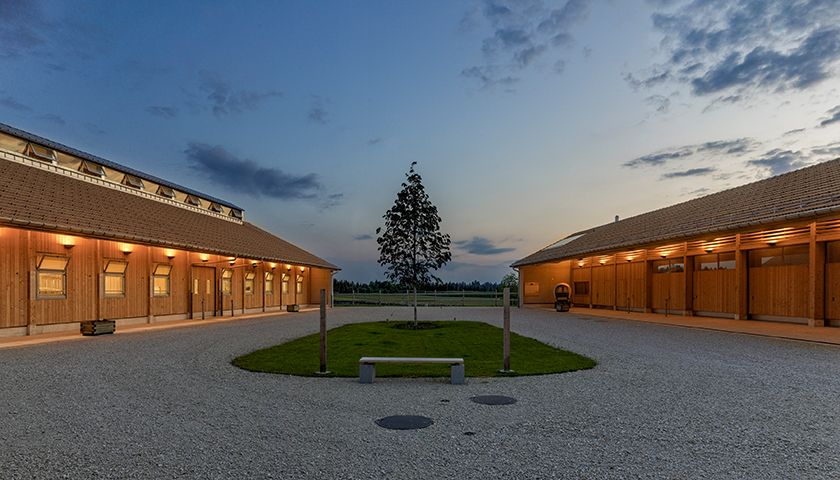 Beim Baustil haben wir auf Moderne und Tradition gesetzt. Die schlichten Gebäude wurden aus hellen, gut belüfteten Holzkonstruktionen erstellt. Direkt an den Pferdestall grenzt ein grosser Trockenplatz mit Holzschnitzeln an. Unterbrochen wird er von eingezäunten Schutzinseln mit Bäumen, Gebüschen und Holzhaufen – ökologischen Ausgleichsflächen, die Lebensraum für Kleinlebewesen bieten. Die Trockensteinmauern, die Les Murs erst zu dem machen, was es ist, werden saniert und, wo nötig, wieder aufgebaut.