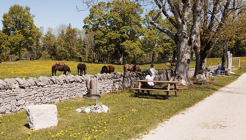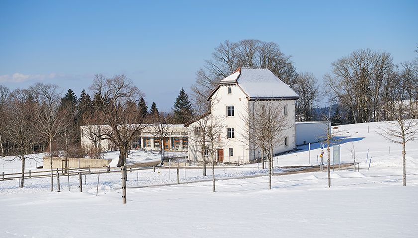 Unsere grösste Station, die rund achtzig Tieren, darunter zahlreiche Ponys und Esel, ein Zuhause bietet, liegt ausserhalb des Dorfes Les Bois. Moderne Gebäude und Stallungen verbinden sich hier harmonisch mit dem im 17. Jahrhundert erbauten Klostertürmchen zu einer Einheit. Die riesigen Weiden erstrecken sich fast endlos auf der Hochebene über dem Doubs und dürfen auf Wanderwegen durchquert werden. Pferde und Menschen können sich so zwanglos und ohne Schranken begegnen und gemeinsam Natur, Ruhe und Freiheit geniessen. Unsere Ställe auf allen Stationen stehen unseren Besucherinnen und Besuchern täglich zwischen 8 und 17 Uhr offen.