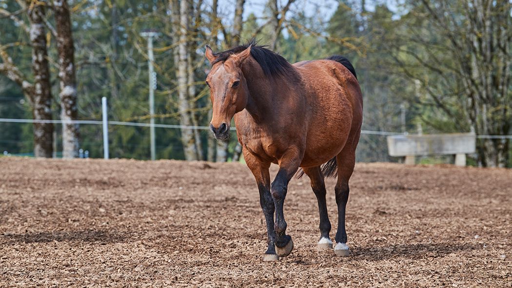 Der braune Wallach scheint seine neue Heimat voll akzeptiert zu haben und geniesst die schier unendliche Freiheit. Was gibt es schöneres, als sich zwischendurch genüsslich zu wälzen, um die lästigen Winterhaare etwas abzustreifen. Der grosszügige Schnitzelplatz bietet sich dafür auch im Winter an.
