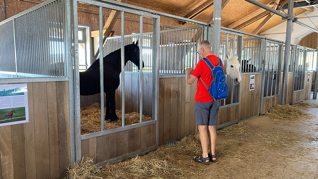 Wenn die Sonne draussen richtig hoch steht und die Hitze und Fliegen für die Senioren zur Plage wird, freuen sie sich, wenn sie für ein paar Stunde in ihre kühlen Boxen zurückkehren können. Das freut nicht nur die Tiere, sondern auch die Besucher von Le Roselet. So können Sie die Tiere ganz aus der Nähe betrachten und Fotos machen. Hier durfte zur Abwechslung mal Doekele Model stehen.