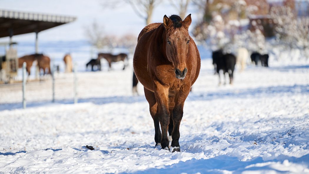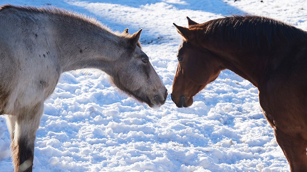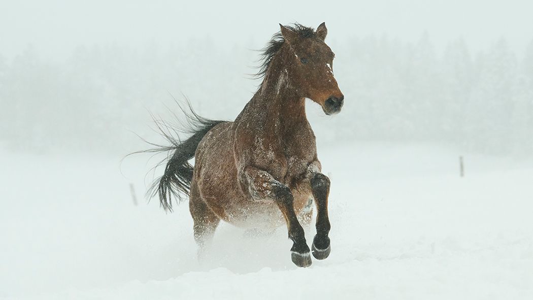 Bereits Ende November fällt in den Freibergen der erste Schnee. Ladino und seine Gefährten geniessen das weisse Pulver in vollen Zügen: Erst galoppieren sie los und machen ein paar fröhliche Bocksprünge, dann wälzen sie sich genüsslich im Schnee, um Staub, Dreck und lose Haare loszuwerden. Das freut auch die Pfleger – so reinigen sich die Pferde beinahe von selbst.