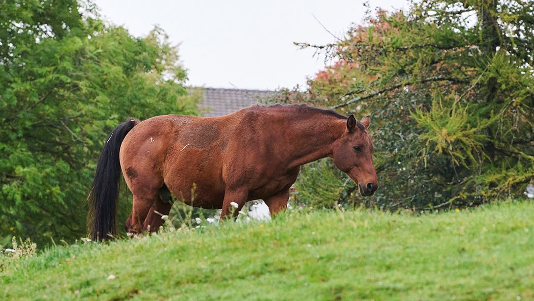 Ladino hat auch weiterhin einen kugelrunden Bauch. Seit er bei uns lebt, hat er ein paar wenige Kilos zugenommen, doch im Grossen und Ganzen hält er sein Eintrittsgewicht. Der 20-jährige Warmblüter ist mit seinen «nur» 160cm Stockmass nicht grösser als ein Freiberger. Trotzdem (oder vielleicht gerade deswegen) kommt der Wallach bei den Stuten sehr gut an und kann sich nicht über mangelnde Gesellschaft beklagen.