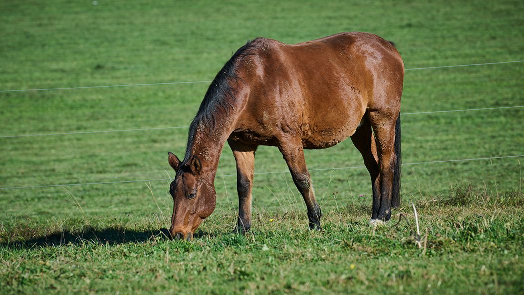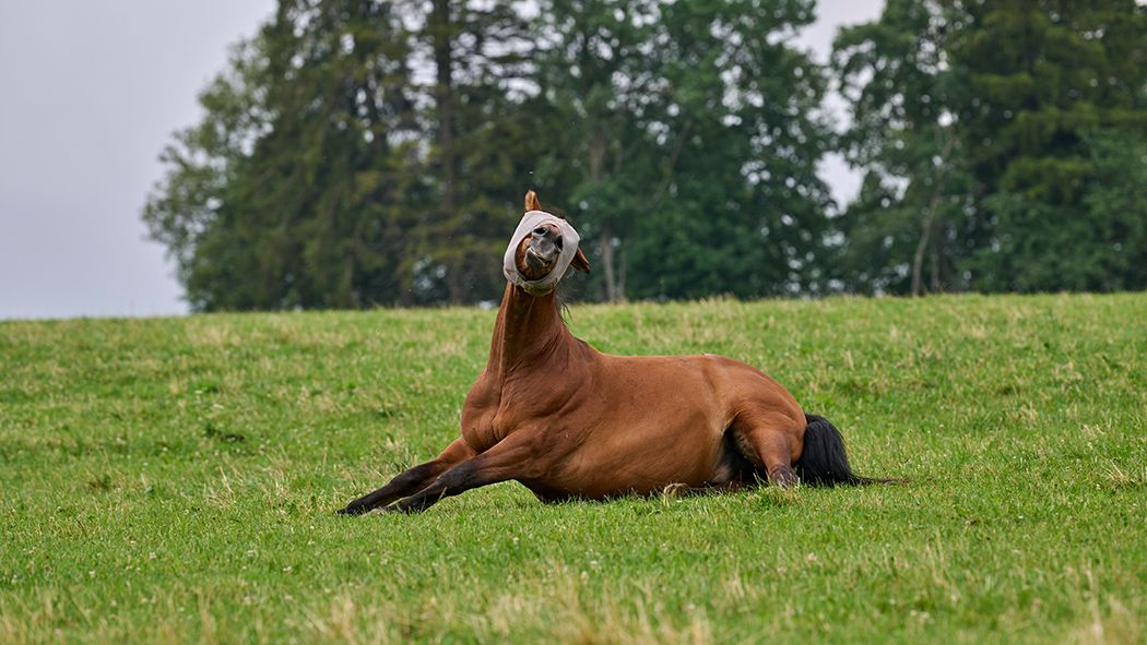 Obwohl es einige Tage geregnet hat und auch deutlich kühler und angenehmer wurde, kämpft Ladino mit den Fliegen. Er nervt sich und seine Augen reagieren auf die lästigen Plagegeister mit Tränenausfluss. Somit trägt auch Ladino eine der schicken Augenmasken. Doch die kleinen Viecher stechen und piksen auch am Rest des Körpers. Was könnte da helfen? Einmal kräftig im Gras wälzen, denkt sich Ladino!