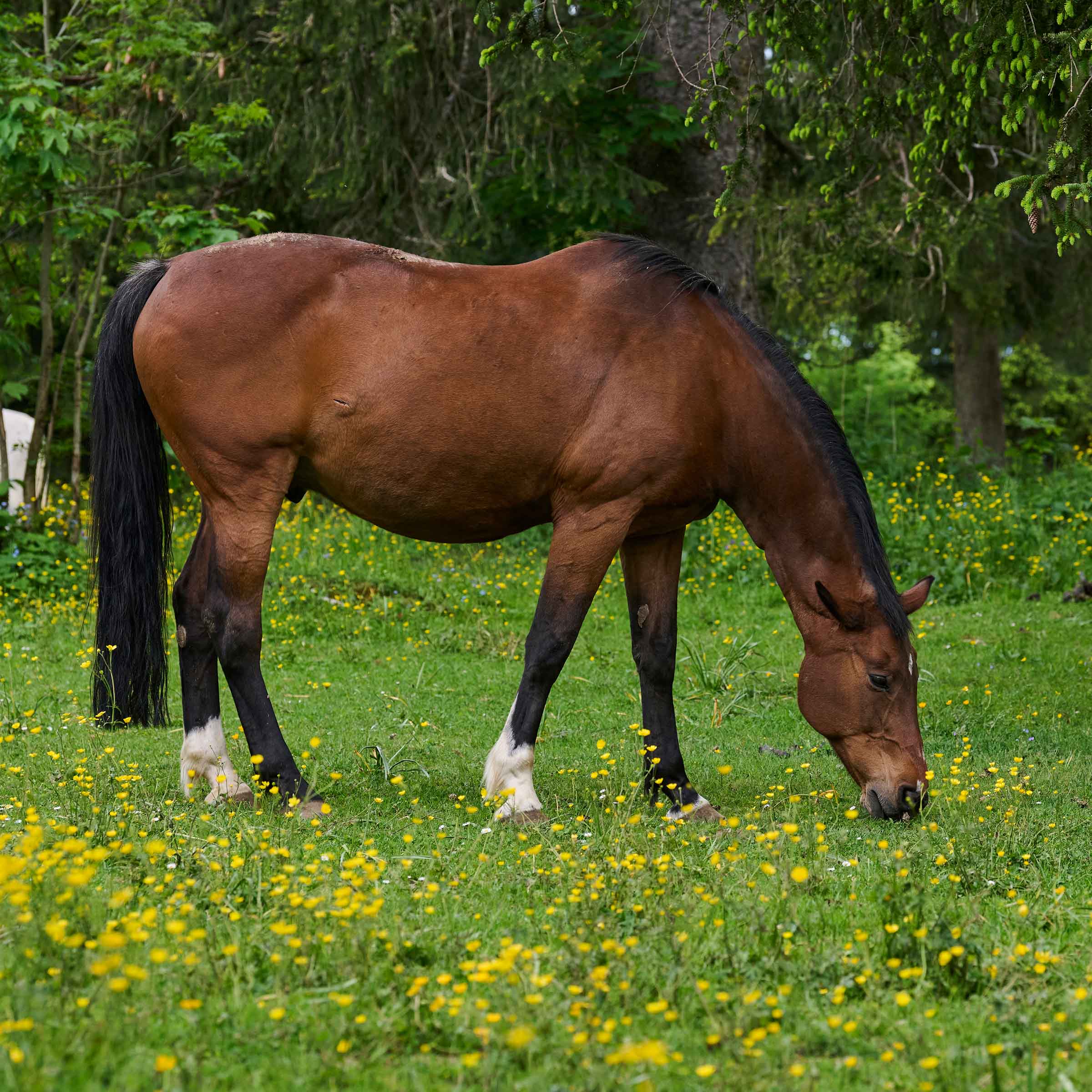 Nach einer unbeschwerten Fohlenzeit, die er auf weiten Weiden mit anderen jungen Pferden verbrachte, wurde Caretino respektvoll und schonend eingeritten. Gut trainiert und willig begann er eine Karriere als Spring-, Dressur- und Vielseitigkeitspferd. Überzeugt, dass das Leben in der Herde und die weiten Weiden ideal für ihren alten Caretino sein würden, freute sich seine Besitzerin sehr, als er im Januar 2024 zu uns kam. Obwohl Caretino zu Dominanz neigt, verhält er sich umgänglich mit seinen Artgenossen. Erstaunlicherweise ist der Wallach Menschen gegenüber manchmal ängstlich, obwohl man deutlich merkt, dass er immer mit Respekt behandelt wurde.
