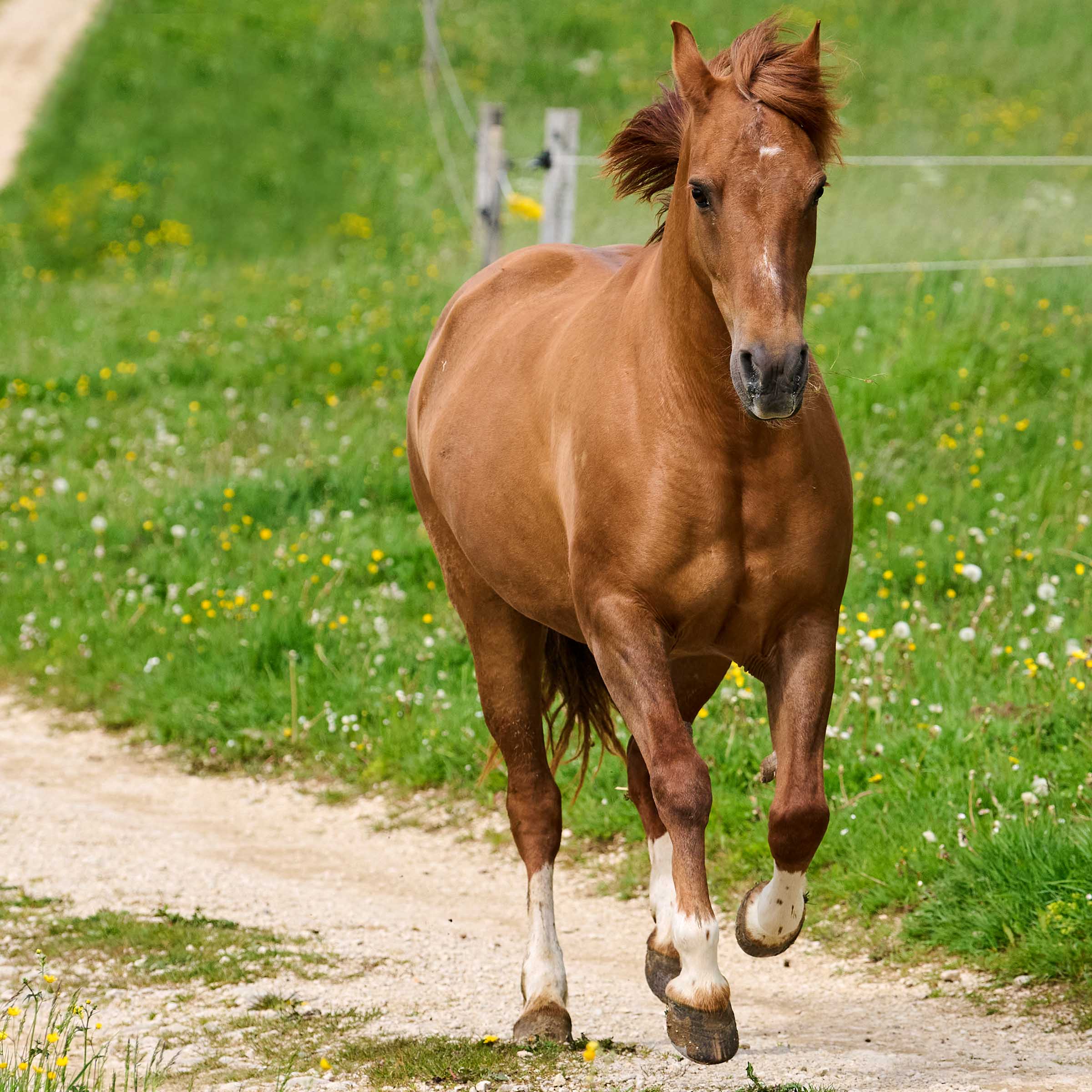 Diese wunderschöne Fuchsstute verbrachte die ersten zehn Jahre ihres Lebens bei ihrem Züchter, wo sie drei Fohlen auf die Welt brachte. Colette wurde von einer 50-jährigen Frau, die mit 40 Jahren mit dem Reiten begonnen hatte, als Freizeitpferd gekauft. Sie hatte ein aktives Leben mit Patrouillenritten und Gymkhanas, wurde in der Freiheitsdressur, an der Doppellonge oder am Boden gearbeitet und genoss nebenbei ein Leben auf der Weide. Sie kam im März 2022 zu uns, in ihren wohlverdienten Ruhestand. Die Stute weiss, was sie will. Sie hat es sich zur Gewohnheit gemacht, die Böse zu mimen indem sie die Ohren anlegt, weil sie lernte, mit diesem Verhalten in Ruhe gelassen zu werden. Sie ist aber umgänglich, nur den Tierarzt mag sie überhaupt nicht.