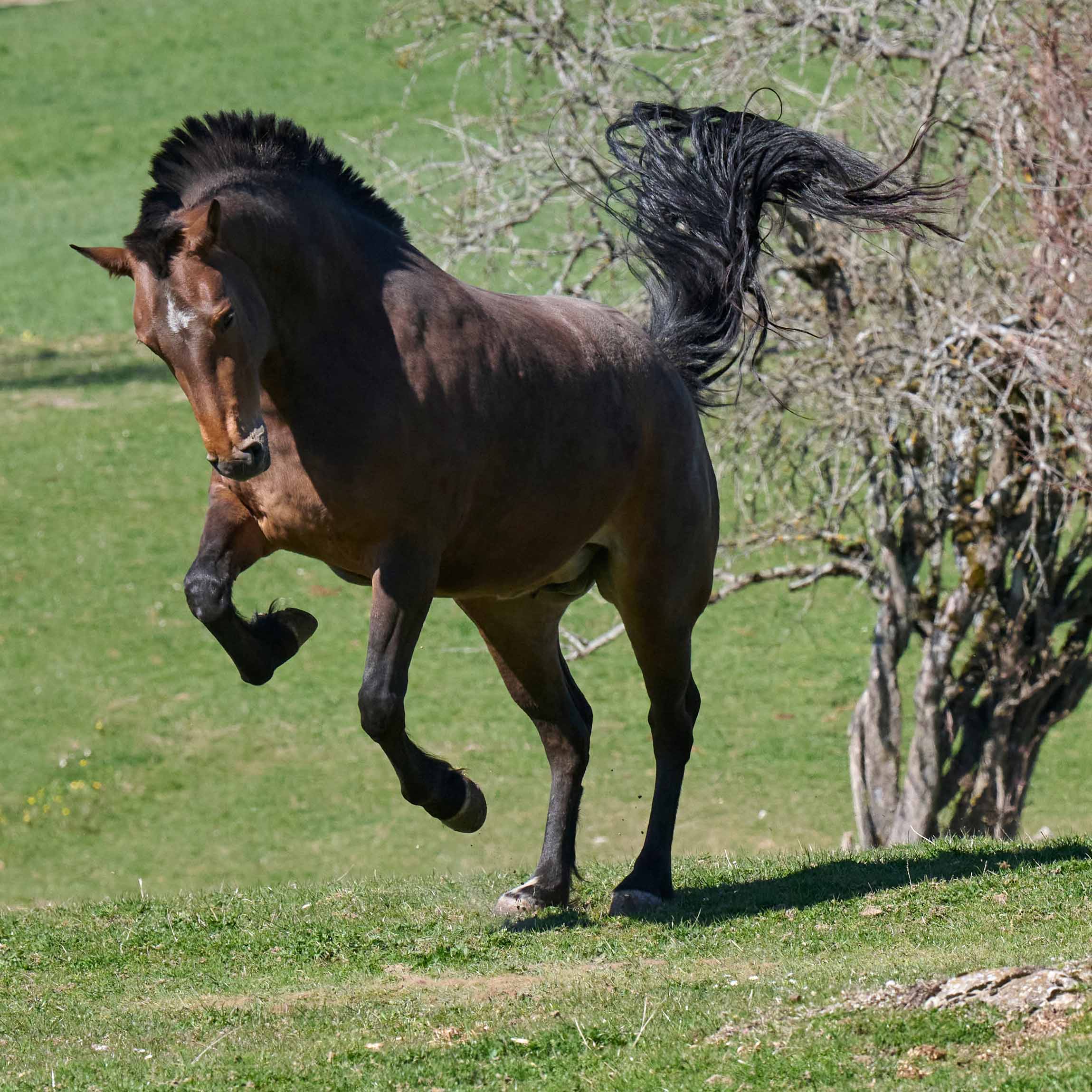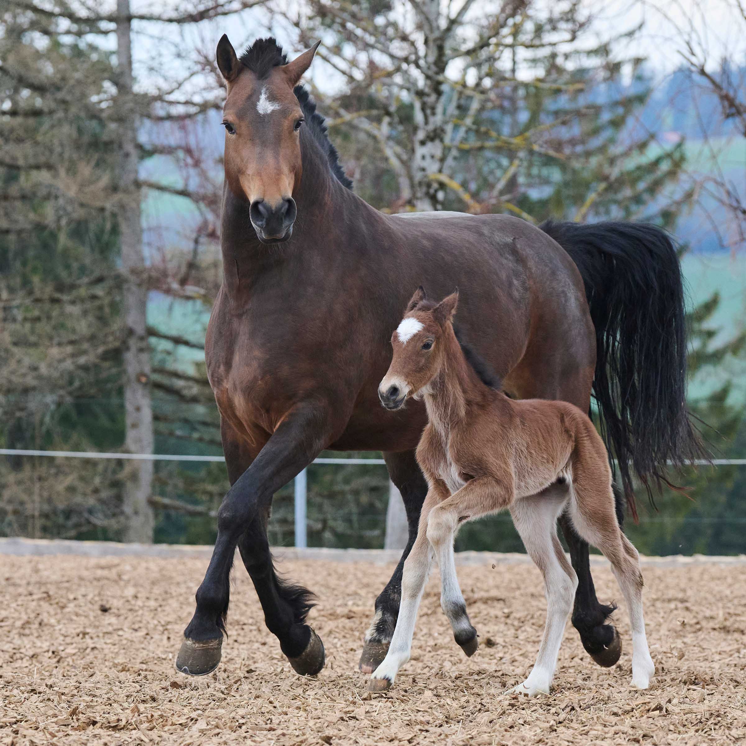 Am 3. April erblickte das erste unserer beiden Fohlen im 2020 das Licht der Welt. Zuchtstute Ecluse hat ein gesundes Mädchen namens Eileen zur Welt gebracht. Die vorwitzige Eileen, deren Vater Little Boy heisst, trägt einen weissen Fleck auf der Stirn. Inzwischen ist Eileen eine erwachsene Freibergerstute und hat ihren Feldtest erfolgreich bestanden. Sie ist eine unserer beiden Zuchtstuten in Le Roselet und wird uns hoffentlich noch viele schöne Fohlen schenken.