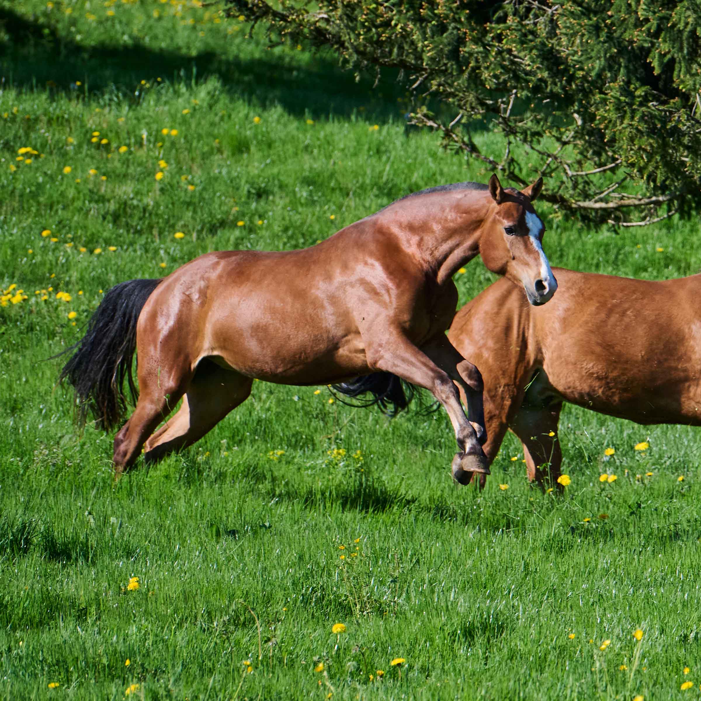 Am 1. Mai 2023 schenkte unsere Freibergerstute «Ecluse» ihrem vierten Fohlen das Leben. Ein hübsches, gesundes Stutfohlen hat das Licht der Welt erblickt! Die kleine Dame wurde auf den edlen Namen «Emeraude» (was übersetzt Smaragd heisst) getauft. Ihr Vater ist der schwarze Hengst «Little Boy». Emeraude bleibt während ihrer Jugendjahre in der kleineren Herde von Le Roselet, welche die Sommermonate auf der Gemeindeweide verbringt.