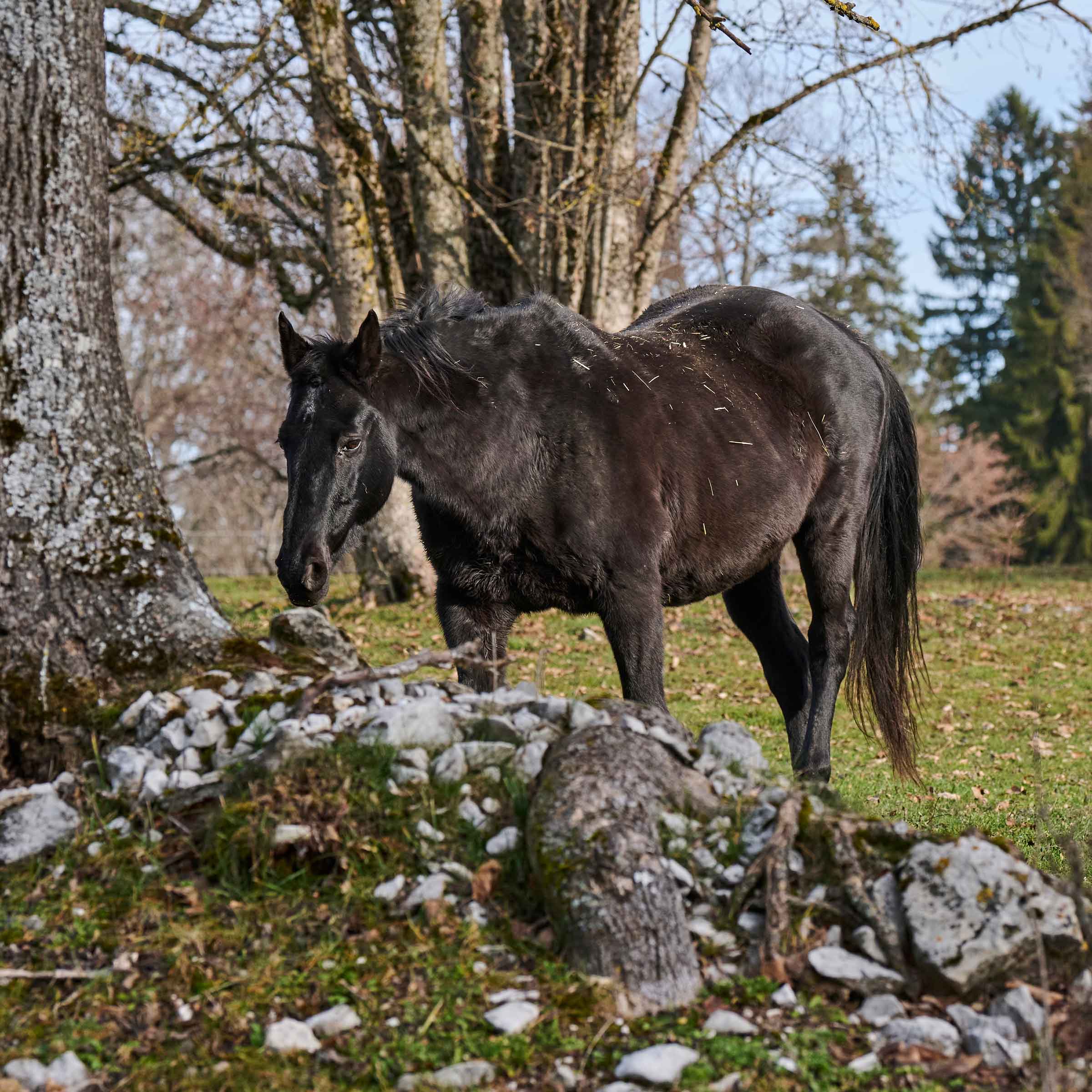 Espionne stiess am 16. Dezember 2025 als Notfall zu unserer Herde auf dem Jeanbrenin, nachdem ihre Besitzerin verstorben war. Mehr Informationen und Fotos der hübschen Stute folgen...