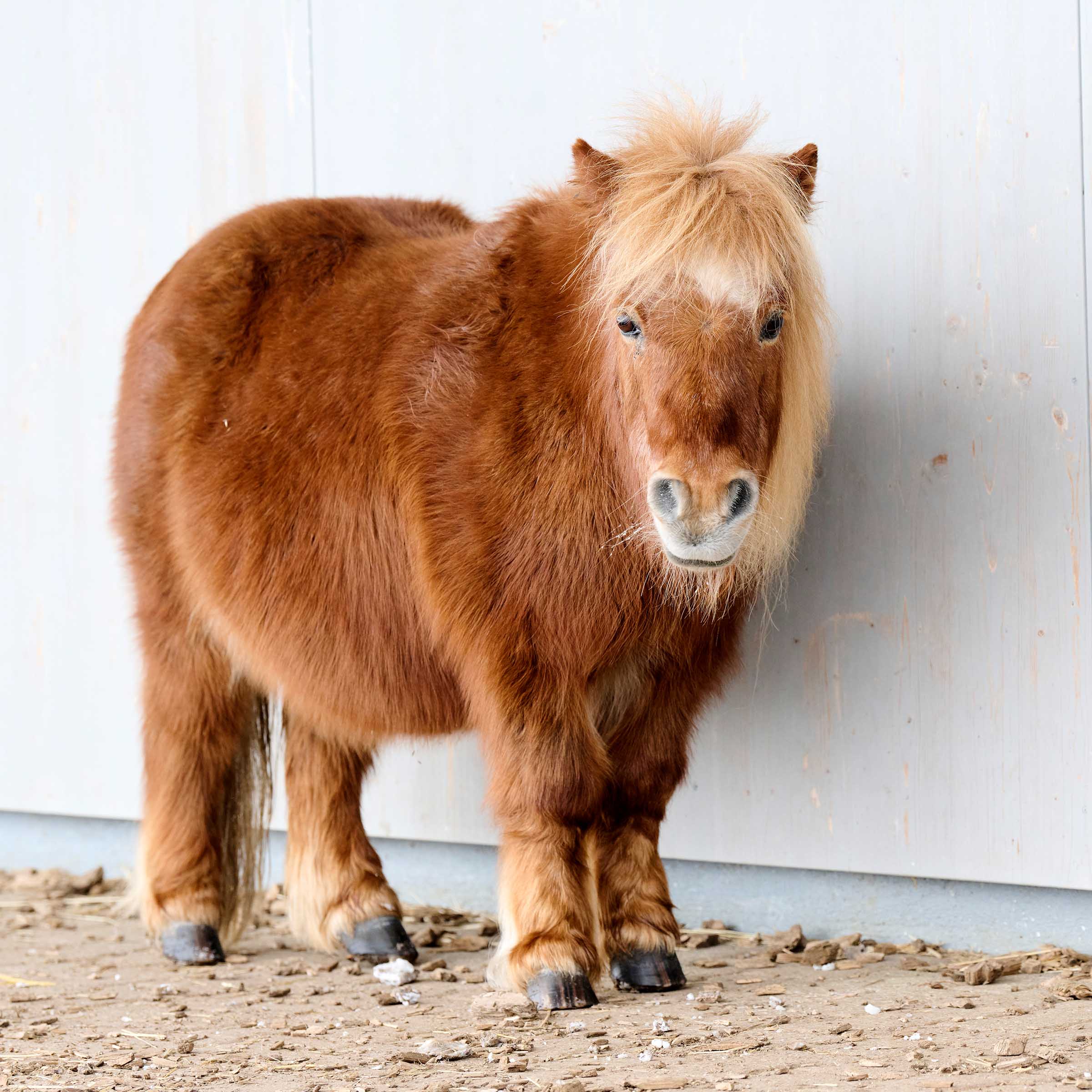 Fabienne und Falco sind zwei fuchsfarbene Shetlandponys von 76cm bzw. 78cm Höhe. Während Fabienne helle Mähne und Schweif hat, ist Falcos Langhaar in derselben Farbe wie sein Fell. Mit ihrer letzten Besitzerin, welche die Ponys seit 2002 beherbergte, waren sie öfters zu Gast an der BEA in Bern. Die beiden sanftmütigen Ponys teilten sich ihren Stall ab 2009 mit 3 Amerikanischen Minipferden. Beim Umzug in die Stiftung im Jahr 2021 trennte sich die Gruppe und Falco kam mit Fabienne nach Le Roselet. Ihre drei Freunde geniessen die Pensionierung in Maison Rouge. Während Falco hier den Chef spielt, machte sich Fabienne auf Entdeckungsreisen ausserhalb des Zaunes. Mit einem zusätzlich montierten Draht am Weidezaun bleibt nun auch Fabienne innerhalb der Abzäunung.