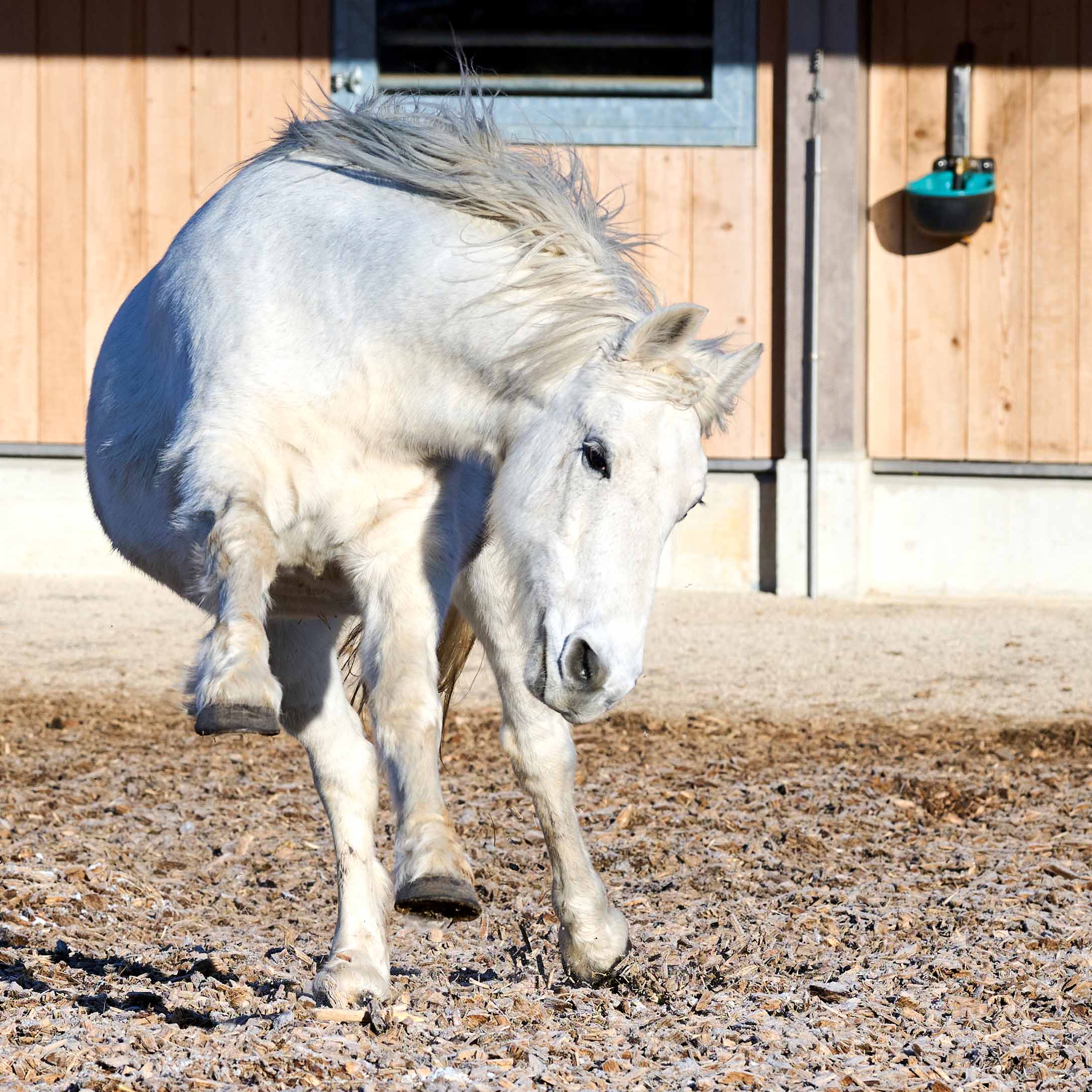Der 2002 in Irland geborene Jacks Favourite, genannt Favy, ist ein echter Connemara. Er wurde im Alter von drei Jahren von einem Ehepaar gekauft, das eine Reitschule für Kinder besass. Favy machte seine Arbeit zur Zufriedenheit aller und auch er genoss den Kontakt mit und den Unterricht mit den jungen Menschen. Favy war ein gutmütiges und liebevolles Pony, dessen einziger Makel darin bestand, dass er sich in Gegenwart von Stuten wie ein Hengst verhielt. Da seine Besitzer aus Altersgründen ihre Tätigkeit aufgaben, kam Favy am 7. September 2022 nach Les Murs. Klein in der Grösse, aber gross in seinem Charakter! Den Menschen gegenüber ist Favy sehr anhänglich, doch bei den Pferden verteidigt er seinen Platz als Herdenchef.