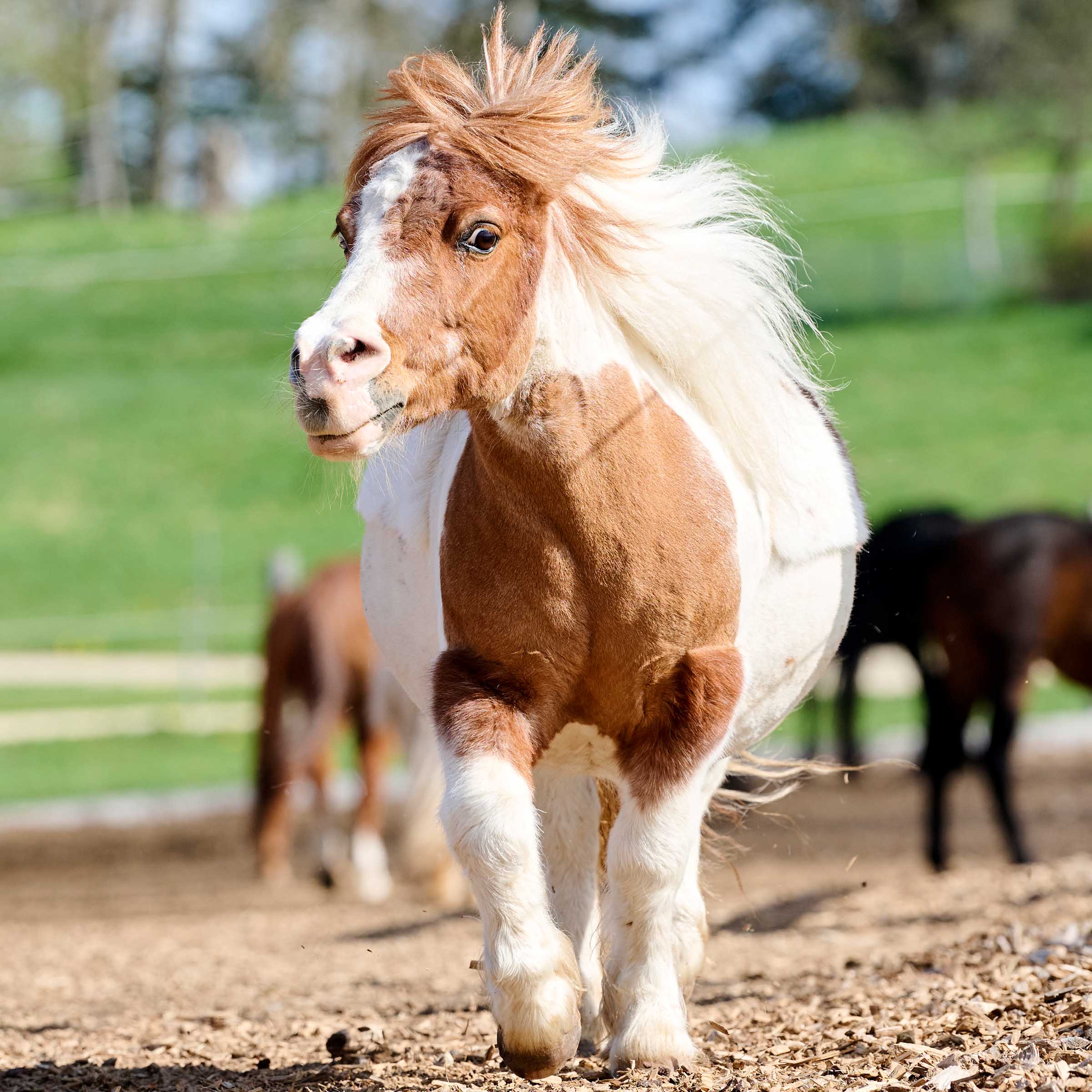 Flecki ist ein Shetlandpony, das am 22. Mai 2005 im Elsass geboren wurde. Ein Ehepaar aus der Region hatte den kleinen Wallach zusammen mit Rocky, ebenfalls ein Shetlandpony, gekauft. Im neuen Zuhause verfügten die beiden Ponys über einen schönen Stall und eine riesige Weide. Rocky starb 2019 plötzlich und liess Flecki völlig hilflos zurück. Auf der Suche nach einem neuen Gefährten für ihren kleinen Schecken, kaufte die Dame Noirette. Die beiden Shetlands wurden schnell unzertrennlich. Aufgrund gesundheitlicher Probleme war die Besitzerin nicht mehr in der Lage, sich um Flecki und Noirette zu kümmern. So kam es, dass die beiden am 7. Dezember 2022 in unser Heim in Maison Rouge zogen. Leider mussten wir Noirette nur wenige Wochen nach ihrer Ankunft erlösen.