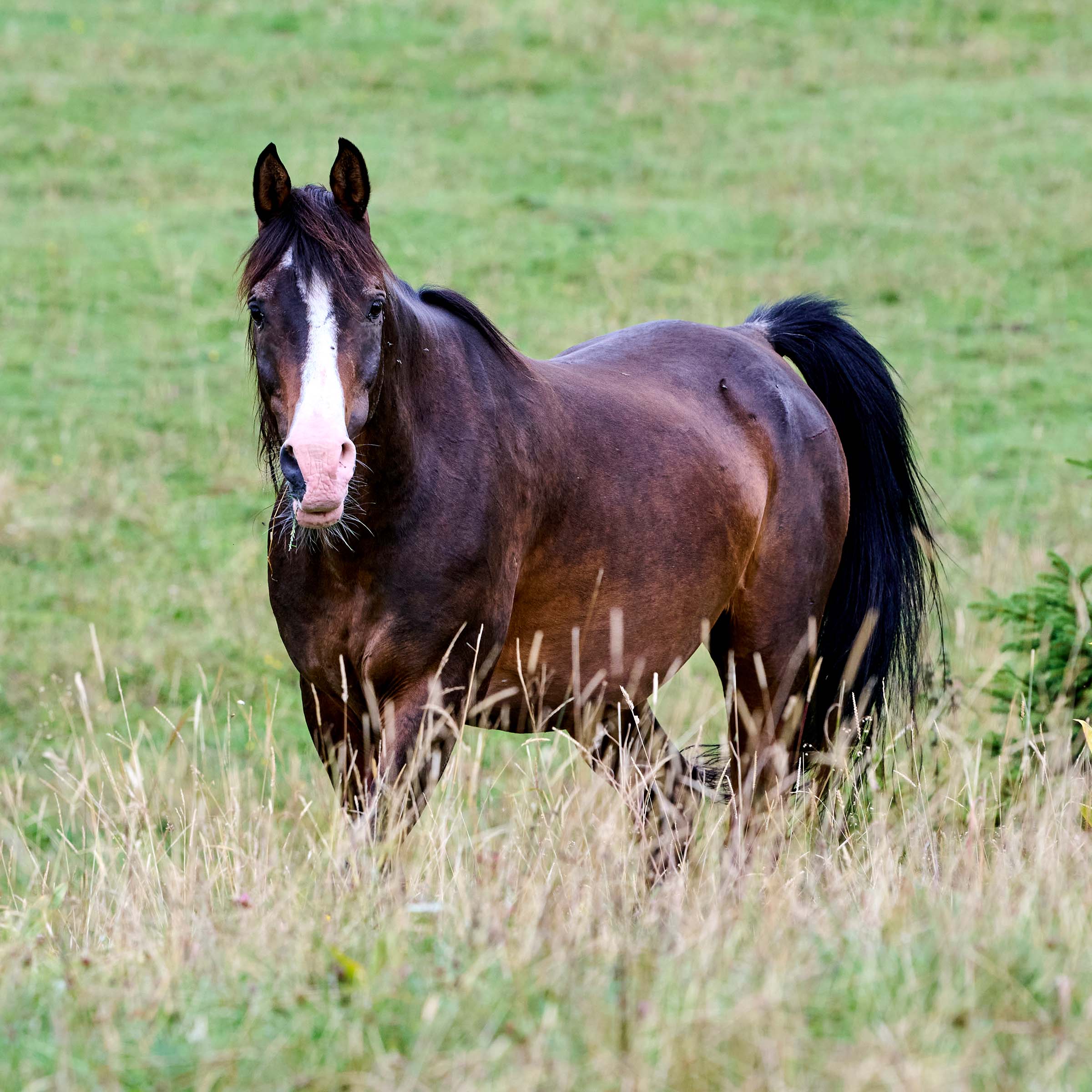 grosse breite Blesse; rechtes Nasenloch dunkel gefärbt