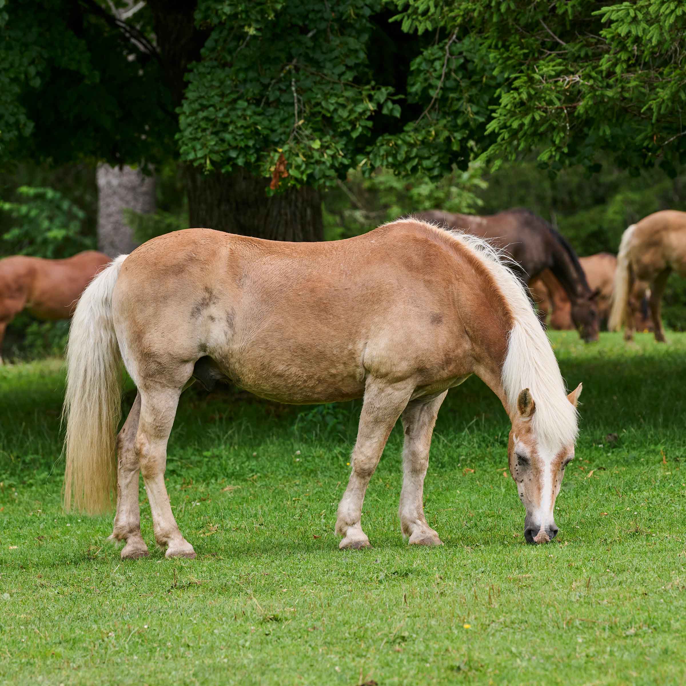 Dieses kleine Pferd mit der blonden Mähne wurde quasi «weitergereicht» an ein Paar, das ein zweites Pferd suchte. Obwohl die Dame ursprünglich keinen Haflinger wollte, gelang es dem einfallsreichen Hugo dank seinem Charme und seiner Liebenswürdigkeit, all seine Schabernacke wiedergutzumachen. Sowohl das Pferd als auch seine Besitzerin waren Anfänger und haben gemeinsam die Freuden des Reitens unter der Anleitung eines erfahrenen Lehrers entdeckt. Ein ehrgeiziges Projekt von Erfolg gekrönt! Hugo kam im November 2017 für einen schönen Ruhestand in unserer Stiftung an. Weil der Wallach klug und sehr verfressen ist, bleibt er bei jeder Pflege ruhig stehen. Er weiss, nur so erhält er am Ende ein Leckerli. Hugo ist ein sehr umgängliches Pferd.