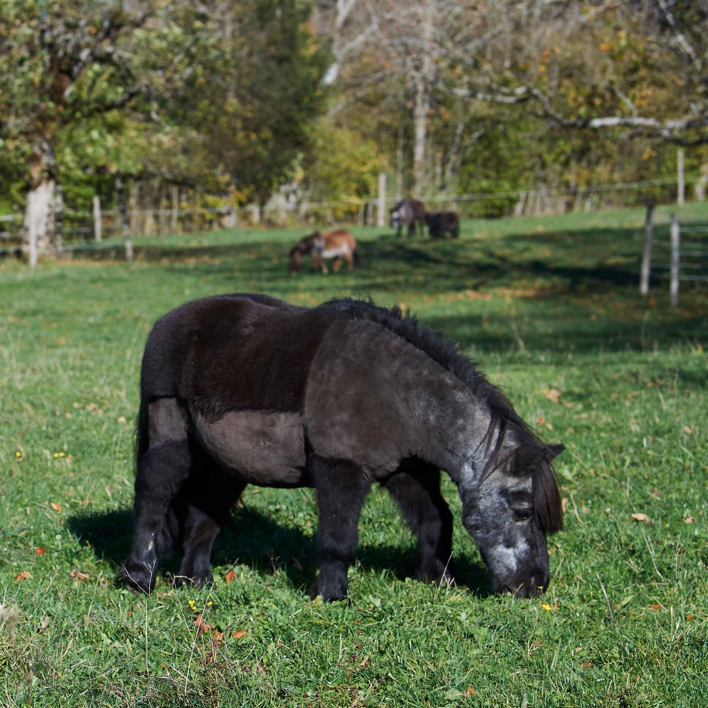 Indy ist ein schwarzes Shetlandpony, ca. 100 cm gross. Sein geschätztes Geburtsjahr ist 1989. Indys Besitzerin lernte ihn bei einem Bauern kennen. Im Jahr 2014 änderte sich dort auf dem Hof die Situation und Indy musste schnell einen neuen Platz finden. Die Dame kaufte ihn und stellte ihn zum Pferd, welches sie bereits besass. 2015 bekam Indy einen aggressiven Pilz auf seinem linken Auge. Schlussendlich wurde er in die Klinik nach Bern gebracht, wo man leider nichts anderes tun konnte, als das Auge zu entfernen. Diese Operation war sehr teuer, und die Besitzerin war nicht mehr in der Lage für Indys Pflege zu bezahlen, so dass sie ihn schweren Herzens abgeben musste. Indy kam deshalb 2015 in die Stiftung für das Pferd.