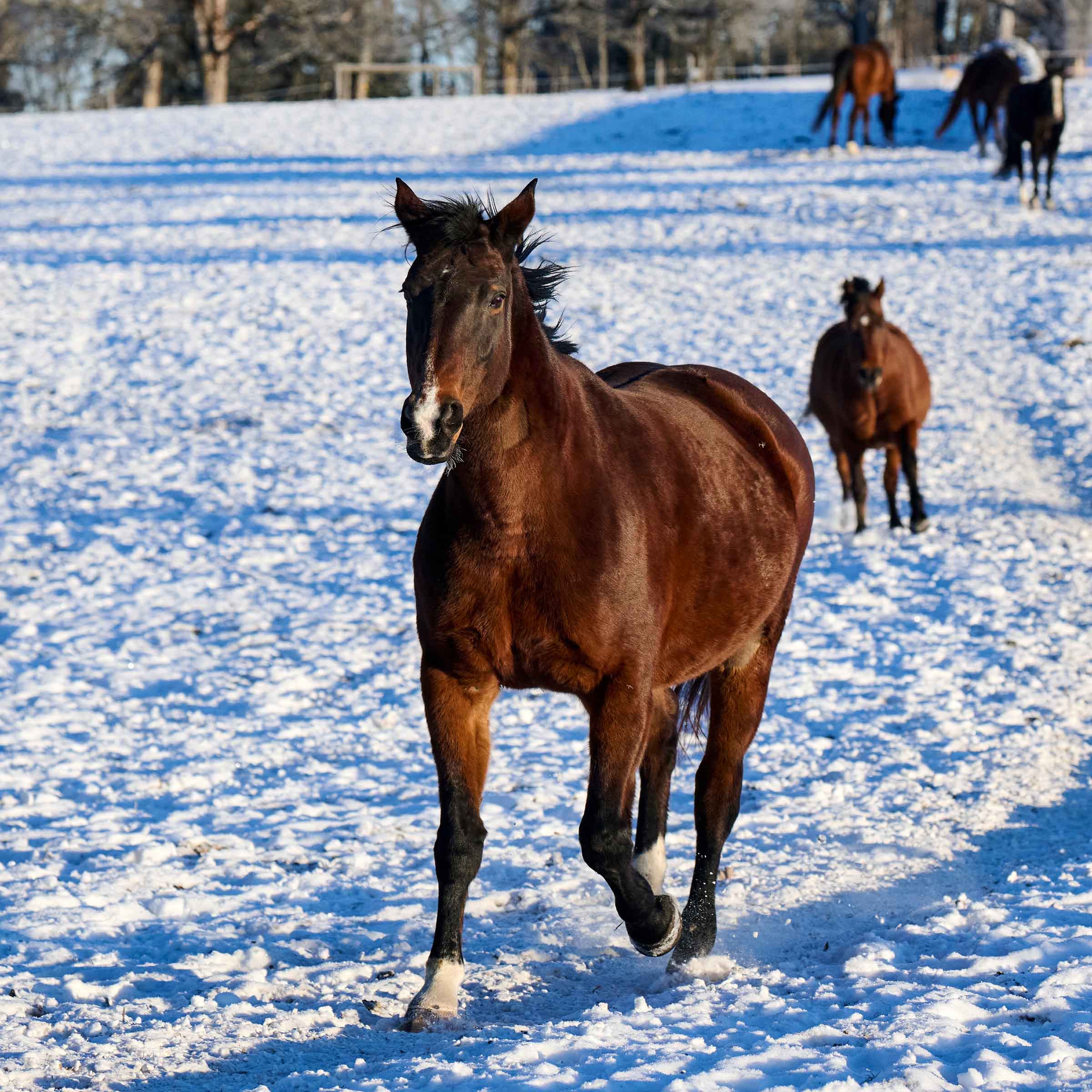 Innovation B ist eine 172cm grosse, braune Irländer-Stute. Nova, so ihr Rufname, ist auf der grünen Insel geboren und wurde später über einen Händler in die Schweiz importiert. Obwohl ihre Rasse und Abstammung sie für den Sport prädestinierten, war Nova sehr scheu und daher ungeeignet, um an Wettkämpfen zu brillieren. Ihre stete Unsicherheit war auch der Grund, warum die liebe Braune mehrmals den Besitzer wechselte bevor sie 2013 von ihrer letzten Besitzerin übernommen wurde. Nach vielen gemeinsamen Jahren entliess die Dame Novas Stallgenosse in den Ruhestand auf dem Jeanbrenin. Nova selbst war noch zu jung, um in der Stiftung für das Pferd aufgenommen zu werden und verbrachte knapp 2 Jahre auf einer Weide im Vorruhestand, bevor sie im Sommer 2024 nach Maison Rouge ziehen konnte.