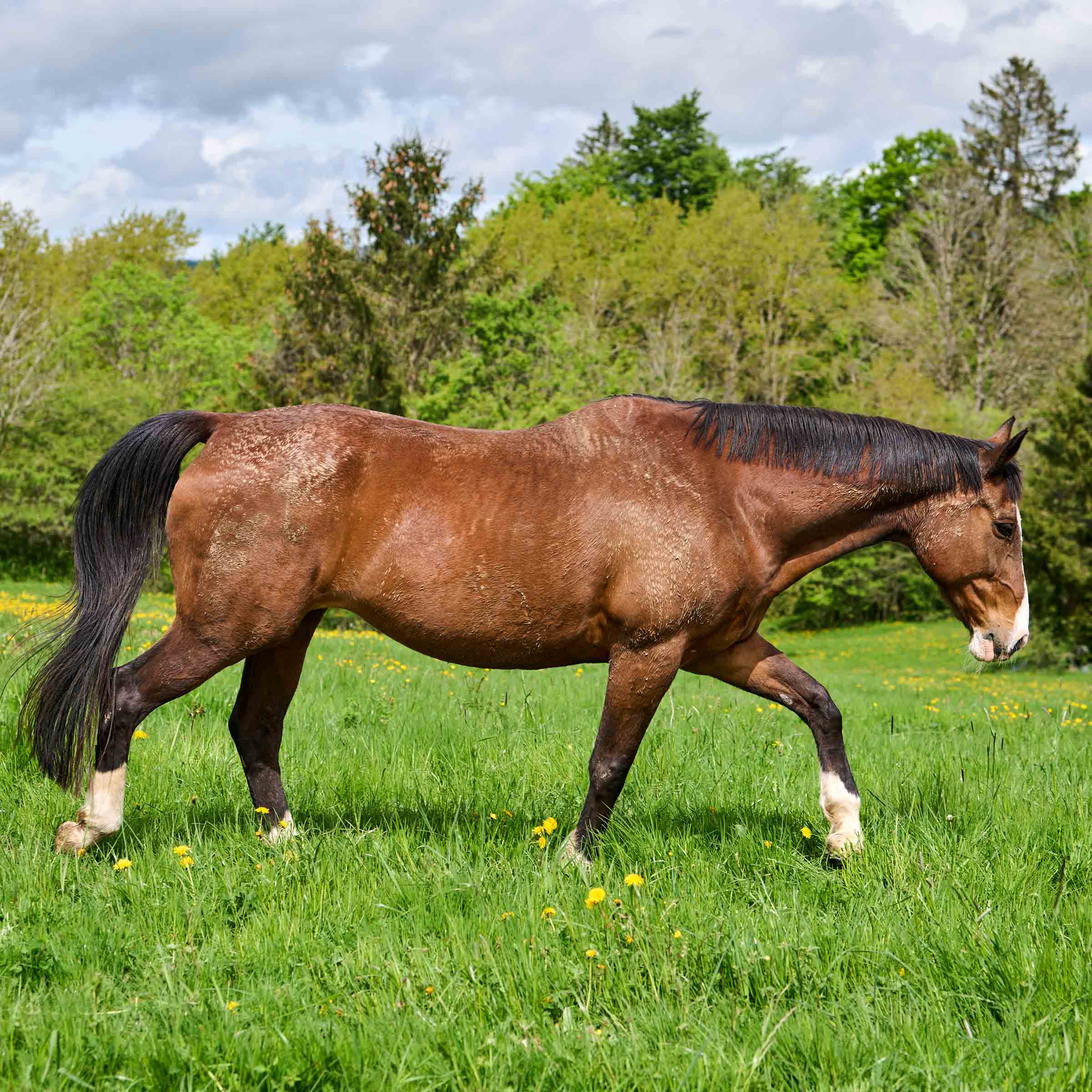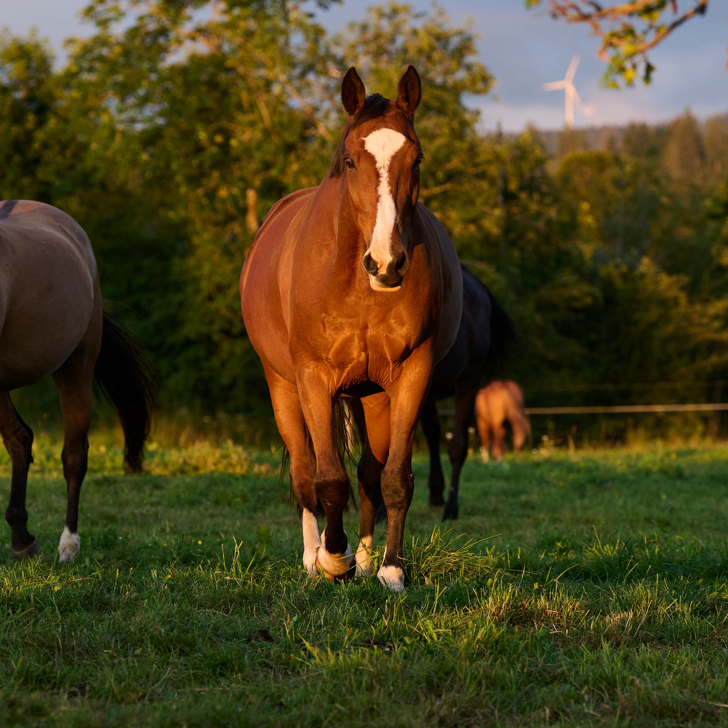 grosse weisse Blesse bis über die Nüstern; Weissabzeichen an allen vier Beinen