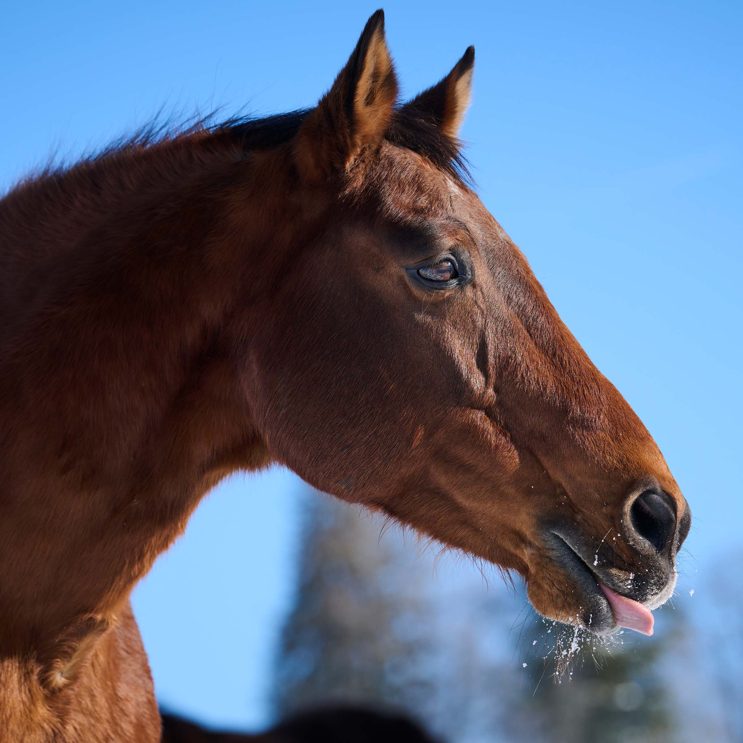Ladino erinnert mit seiner braunen Farbe und seinen nur 160cm Stockmass fast ein bisschen an einen Freiberger, doch gehört der hübsche Wallach zur Rasse der Schweizer Warmblüter. Geboren wurde er am 19. April 2003 und kam bereits im Fohlenalter zu seiner Besitzerin. Aufgrund des vielversprechenden Potentials hatte sie grosse Pläne für den sportlichen Ladino, doch leider litt er nach seiner Kastration im Alter von vier Jahren immer wieder unter starken Entzündungen. Dies führte dazu, dass Ladino lange brauchte um als Reitpferd ausgebildet und eingesetzt werden zu können. An eine Sportkarriere war nicht mehr zu denken und der hübsche Wallach wurde hauptsächlich als Freizeitpferd und für die Bodenarbeit eingesetzt. Die letzten Jahre verbrachte er in Offenstallhaltung mit einer Stute. Ladino ist ein eher ranghohes Pferd und zeigt sich gelegentlich auch mal hengstig, doch kann er sich in jede Konstellation einfügen und findet schnell Anschluss. Für seine Besitzerin war er immer ein Fels in der Brandung, warum sie nach einem perfekten Platz für die alten Tage ihres Lieblings suchte. Am 11. Januar 2022 war es soweit und Ladino zog nach Le Roselet um, wo er fortan unter vielen Artgenossen auf grossen Weiden seine Pension geniessen darf.