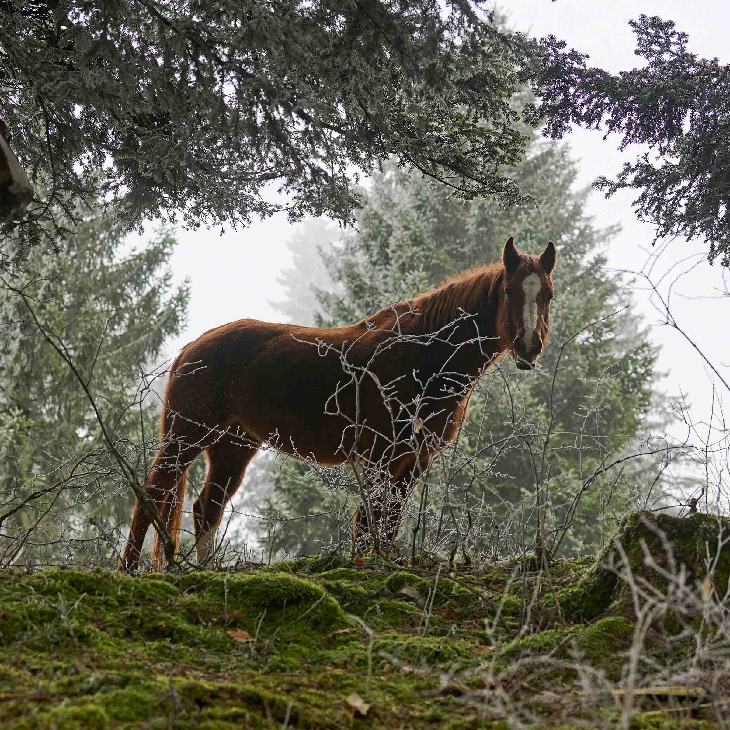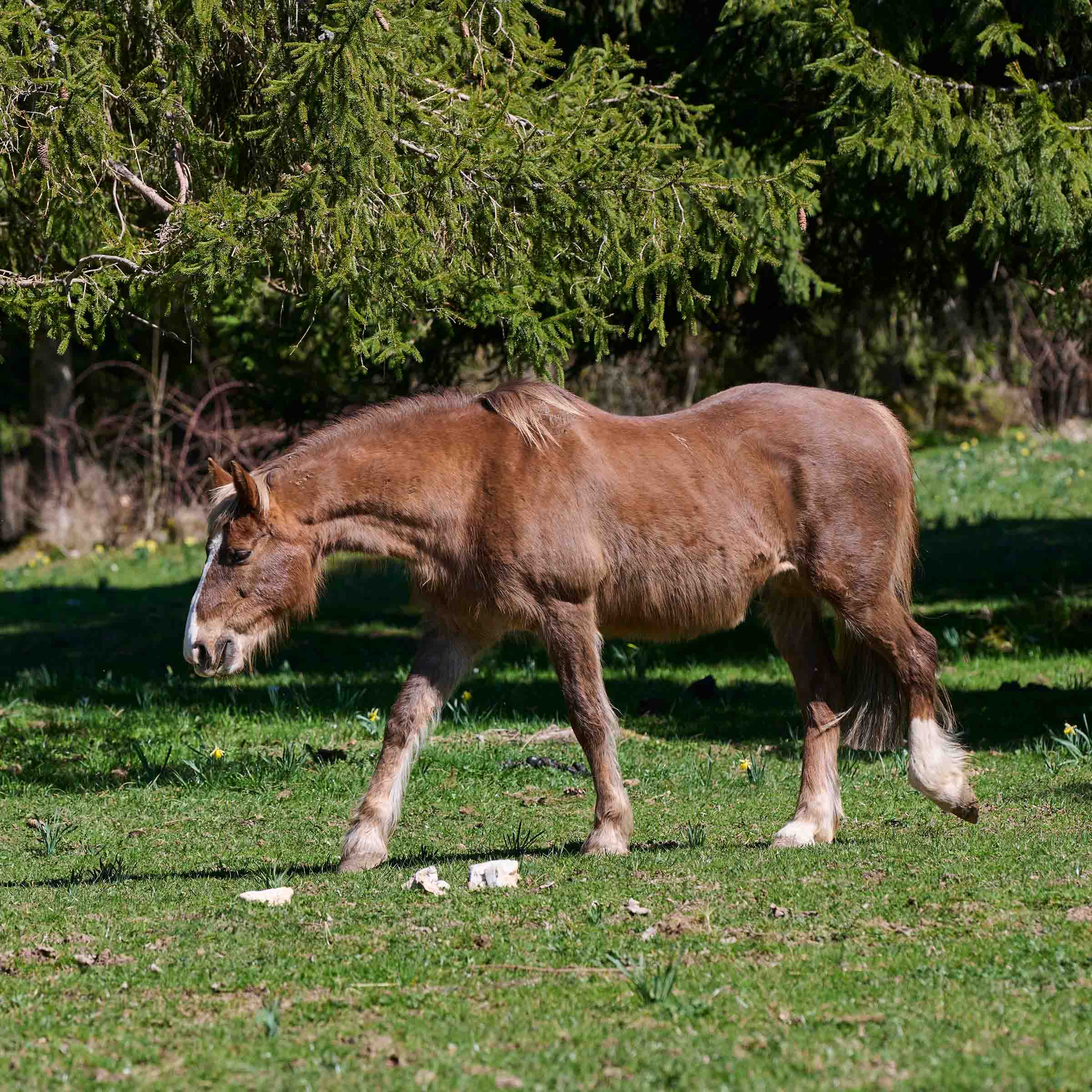 Blesse am Kopf; Weissabzeichen an den Hinterbeinen