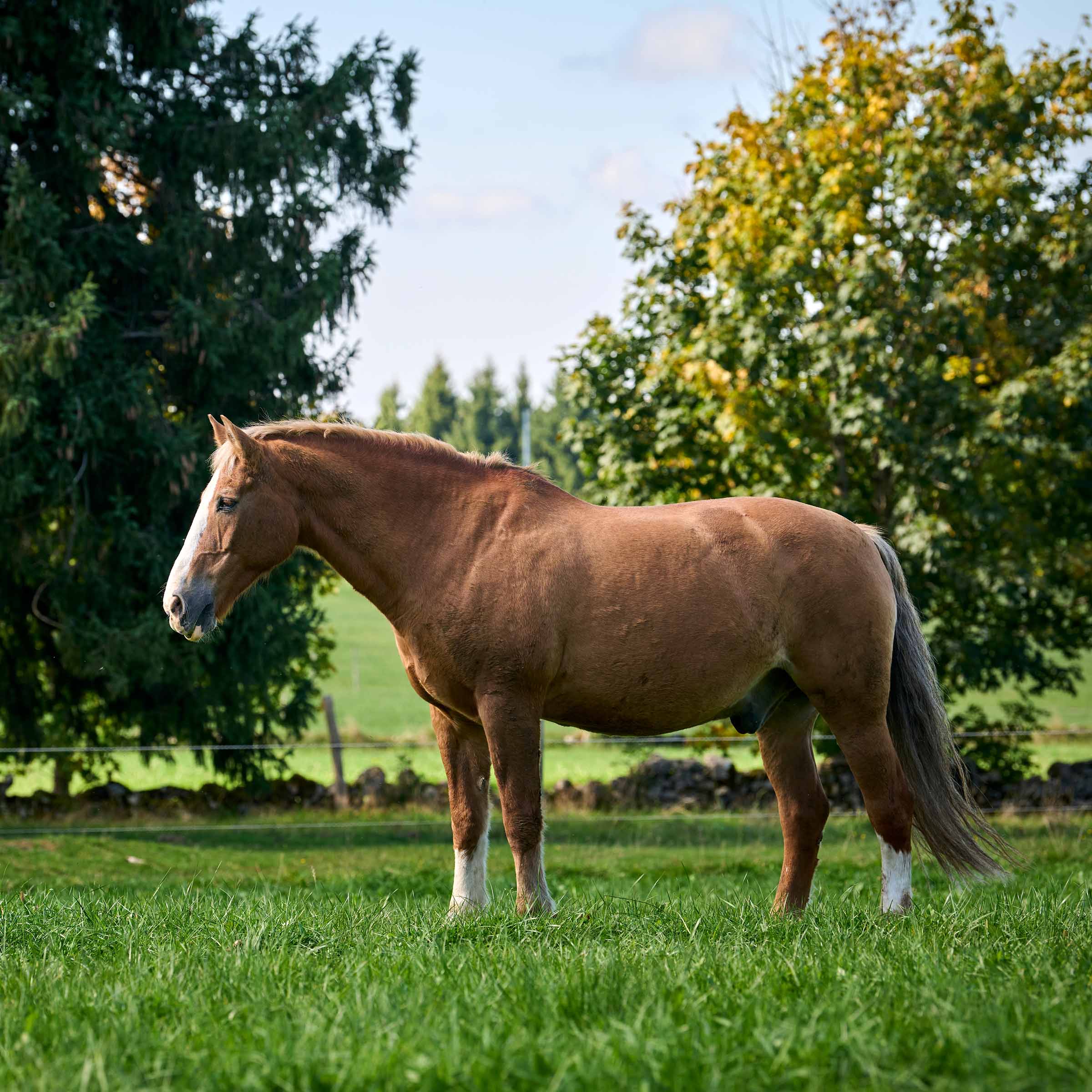 Mister M wurde im Alter von zehn Jahren von einer Genossenschaft, die einen Reiterhof betrieb, als Schulpferd gekauft. Seine Liebenswürdigkeit und Geduld machten ihn schnell zum Liebling der Kinder. Dank seinem freundlichen Wesen sowie seiner inneren Ruhe war er ein exzellenter Lehrmeister für junge Pferde in der Ausbildung. Mister M war vielseitig und nahm auch an Fahrprüfungen teil. Der Wallach genoss seine regelmässigen Aufenthalte auf der Weide mit seinen Artgenossen. Das beliebte Schulpferd kam am 12. Oktober 2022 nach Les Murs, um dort seinen wohlverdienten Ruhestand zu geniessen. Abgesehen von einer Tendenz zu Übergewicht aufgrund seiner Verfressenheit wurden uns keine gesundheitlichen Probleme bei Mister M gemeldet.