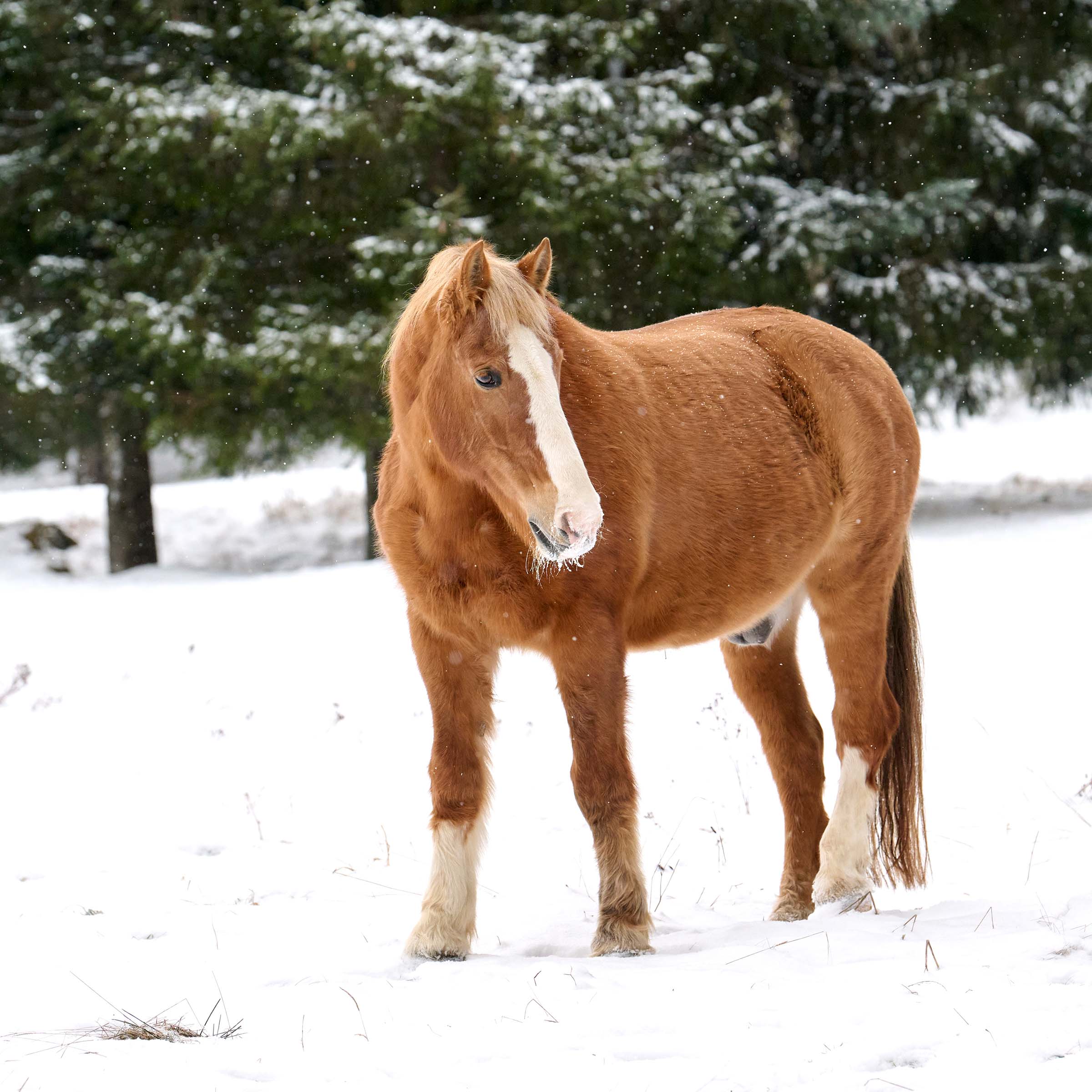 grosse weisse Blesse; Vorderbein rechts und Hinterbein links weiss gestiefelt