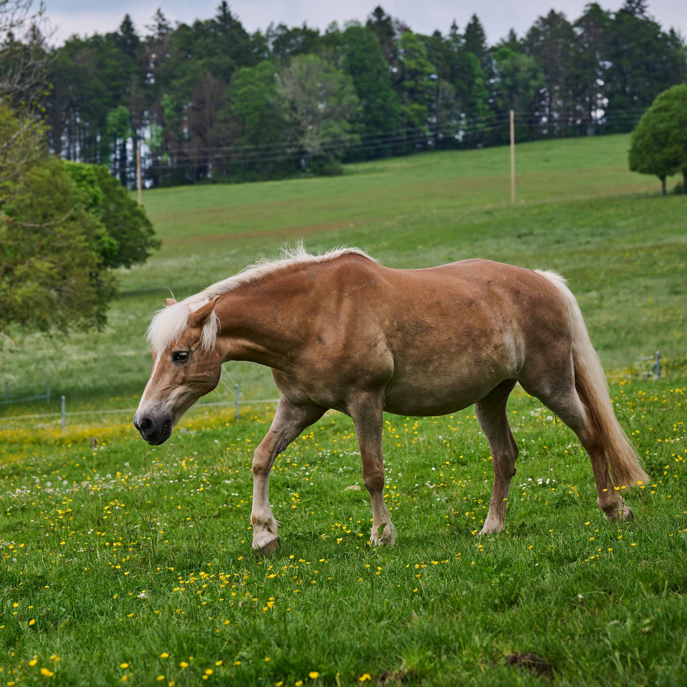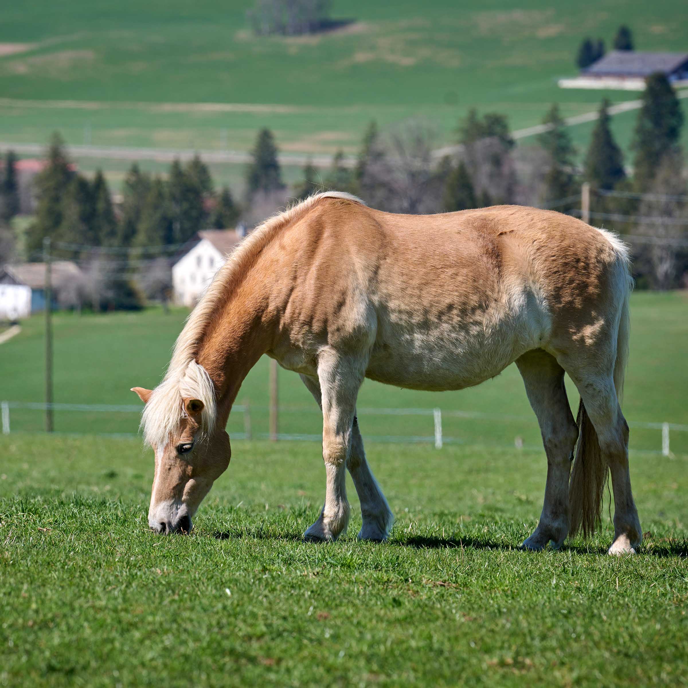 Nardina ist eine Haflingerstute, die 2002 in Deutschland geboren wurde. Diese hübsche, kleine Dame zeigt die typische Fellfarbe ihrer Rasse. Sie kam 2005 in die Schweiz und bestand die Eignungstests für das Fahren und Reiten mit ausgezeichneten Ergebnissen. Nardina hat mit ihrem Partner Albert (genannt Aladin), ebenfalls ein Haflinger, an zahlreichen nationalen und internationalen Fahrturnieren teilgenommen. Auch zu Hause diente die schöne Stute als Kutsch- oder Reitpferd. Außerdem brachte Nardina zwei Fohlen zur Welt. Ihre Besitzer wollten ihrer tapferen Stute einen ruhigen Lebensabend ermöglichen, unter der Bedingung, dass ihr seit 15 Jahren treuer Begleiter mit ihr in den Ruhestand ziehen konnte. So konnte die Stiftung für das Pferd die beiden im Herbst 2023 aufnehmen.
