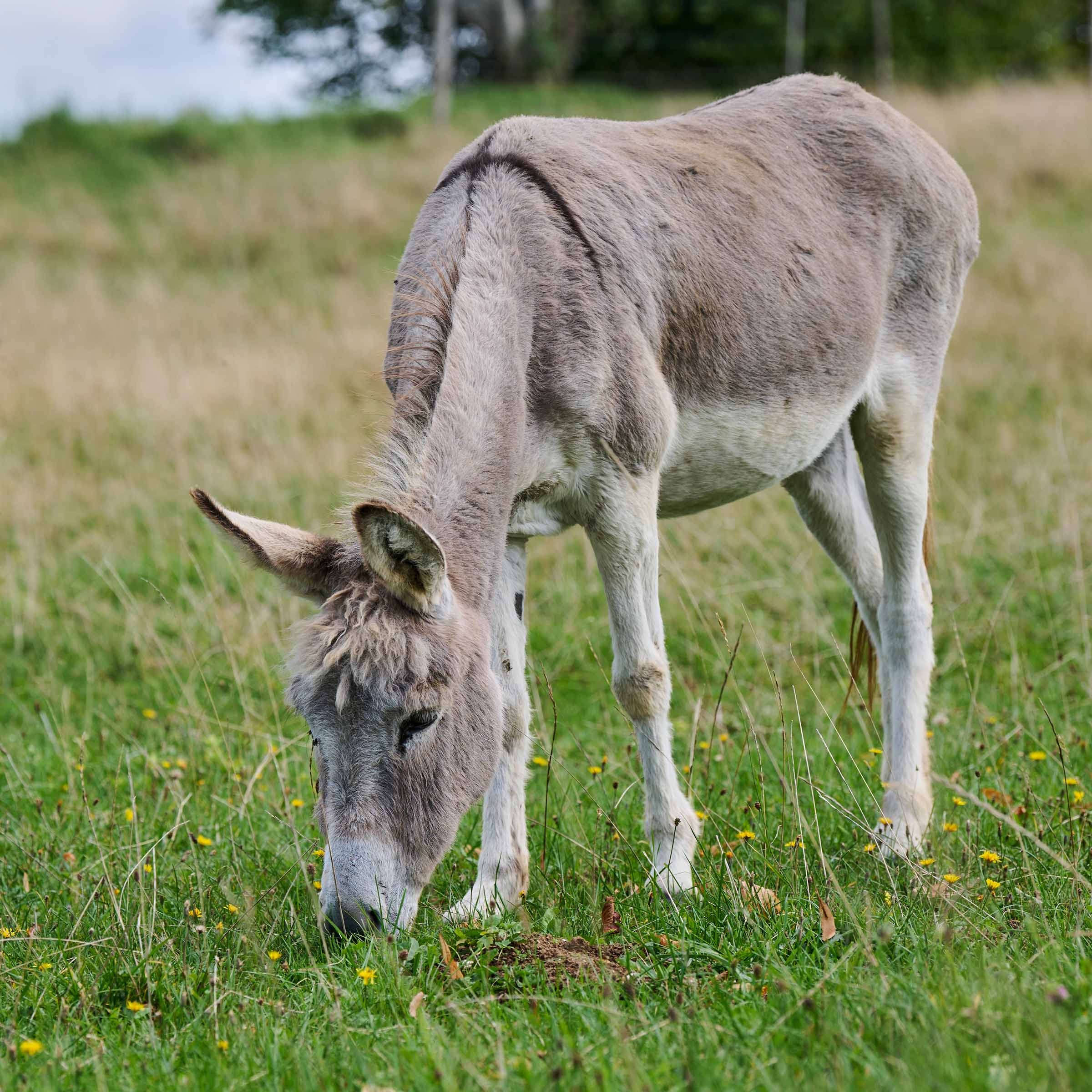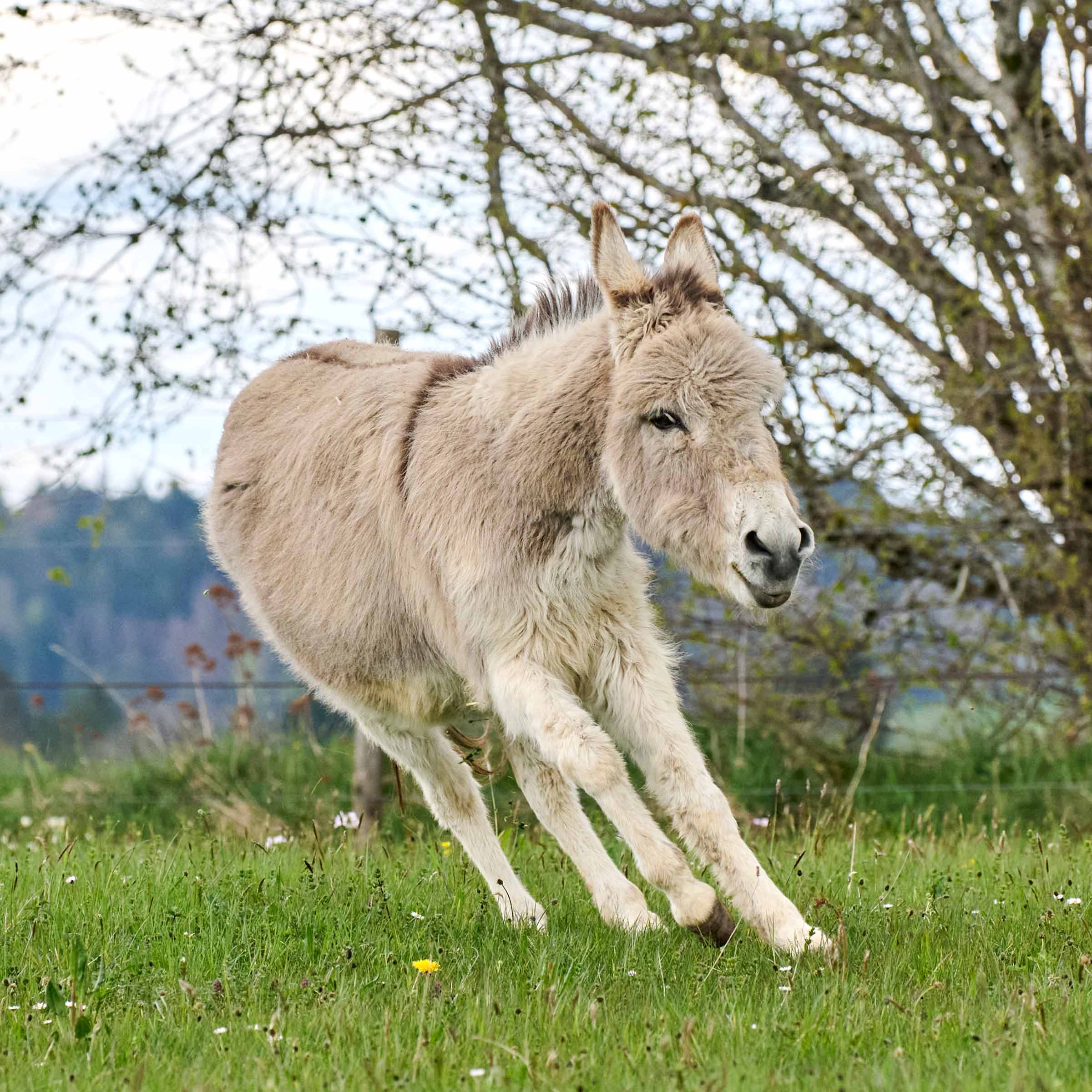 Noisette ist eine kleine, graue Eselin. Ihr genaues Geburtsdatum ist nicht bekannt, wird aber auf das Jahr 2001 geschätzt. Wir wissen nicht viel über die Jugend von Noisette. Sie war ein Geschenk zum 18. Geburtstag ihrer Besitzerin. Mit etwa 14 Jahren bekam die Eselin ein Fohlen namens Bambi, das nie von der Mutter getrennt wurde und ihr zum Verwechseln ähnlich sieht. Die zwei Eselinnen sind sehr lieb und problemlos im Umgang. So waren die beiden Langohren während der Weihnachtszeit jeweils im Einsatz für den Nikolaus. Auch an unbekannten Orten hielten sie ganz still und liessen sich mit Wonne streicheln und verwöhnen. Wegen Zeitmangel und gesundheitlichen Problemen der Eltern der Besitzerin mussten die Eselinnen einen neuen Platz finden und kamen 2015 in unsere Stiftung nach Maison Rouge.