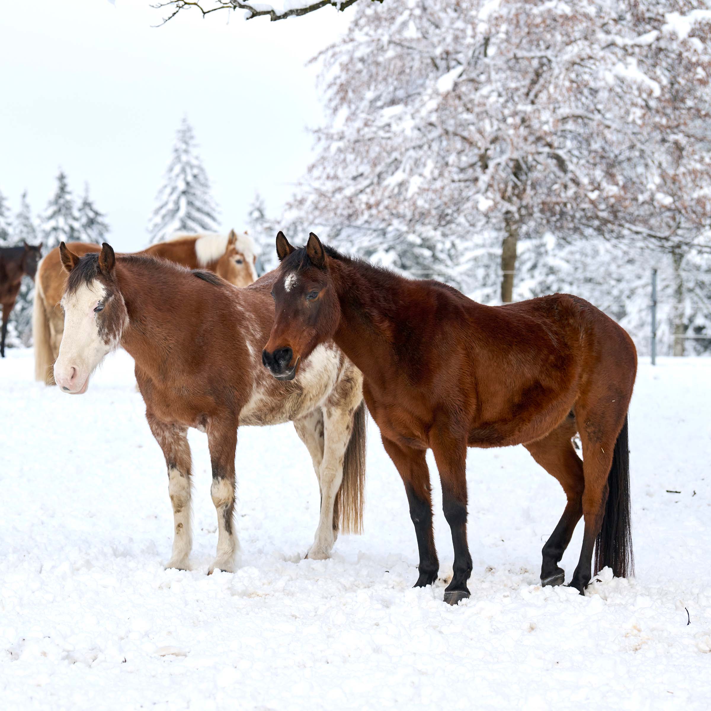 O’Cajoline, so harmonisch wie ihr Name, ist auch der Körperbau dieser keinen - 148cm Stockmass - feinen Araberstute. Seit ihrem sechsten Lebensjahr gehört O’Cajoline ihrer letzten Besitzerin und während 16 gemeinsamen Jahren lebte die Stute direkt an deren Wohnhaus, zusammen mit ihrer Criollo Freundin Bonita. Es hätte noch lange so weitergehen können für die als liebevoll, respektvoll und verschmust beschriebene Araberin, hätte nicht das Leben andere Pläne. Aus gesundheitlichen und privaten Gründen war es der Besitzerin nicht mehr möglich, O’Cajoline und Bonita zu Hause zu halten. So kam es, dass die beiden Stuten zusammen am 09. September 2025 auf Le Jeanbrenin in die Stiftung für das Pferd umziehen durften.