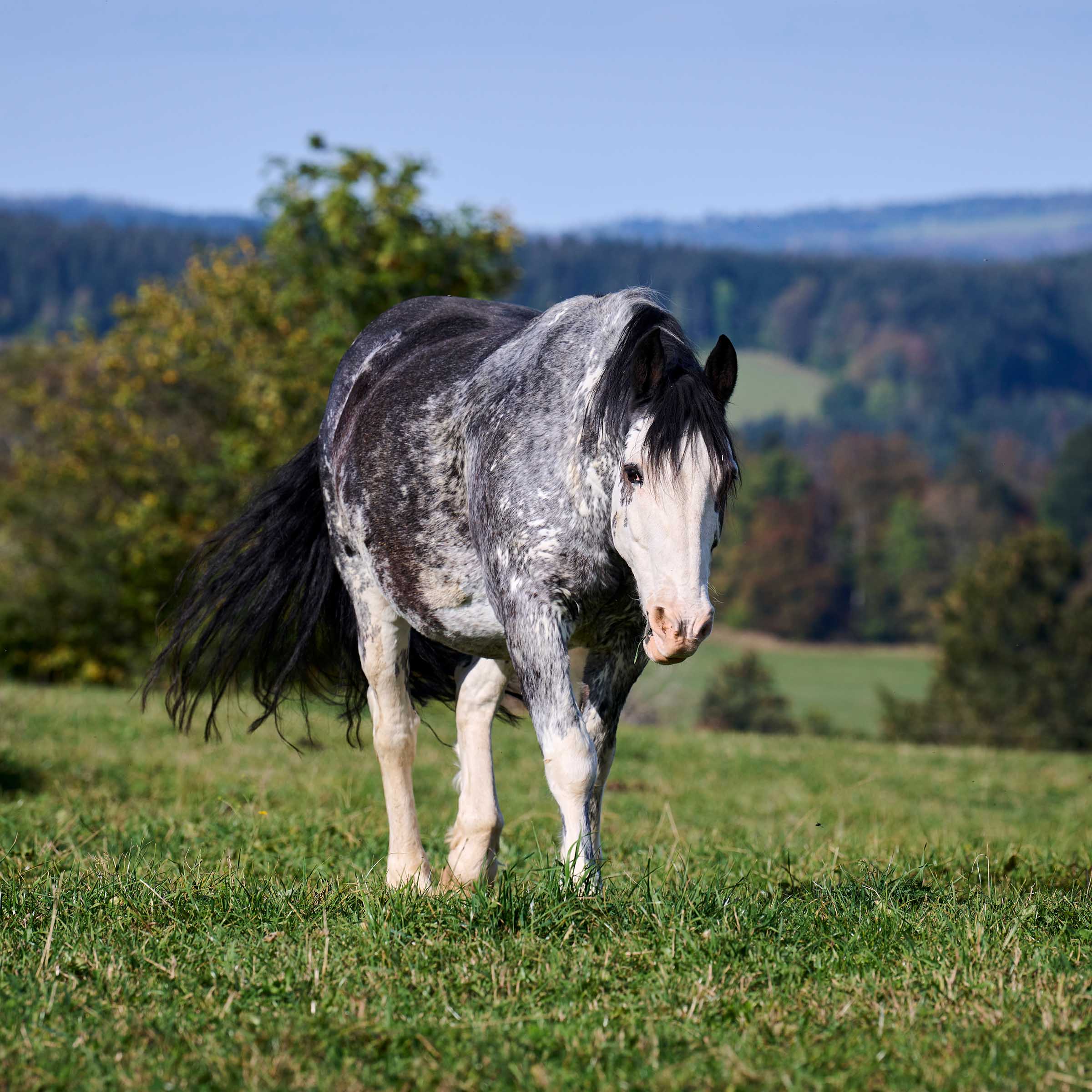 Dieser prächtige Criollo ist in Argentinien geboren, wo sein sehr seltenes und auffälliges Fell «Manchadolampa» genannt wird. Wir vermuten, dass dieses Pferd per Schiff nach Italien kam um dort geschlachtet zu werden. Sein Charisma und seine Farbe retteten ihn und seine letzte Besitzerin entdeckte ihn auf einer Ranch im Waadtland. Picasso liebte die Ausritte und kein noch so unwegsames Gelände hielt diesen sehr zuverlässigen, mit viel Kraft und Willensstärke ausgestatteten Wallach auf. Mit Arthrose konfrontiert, wurde Picasso bei uns angemeldet und kam im Januar 2021 in unserer Stiftung an. Von den anderen nicht besonders gemocht, vielleicht wegen seiner besonderen Fellfarbe, hat Picasso tapfer gekämpft, um seinen Platz in der Herde zu behaupten. Und wenn es ums Essen geht, macht ihm nichts mehr Angst.