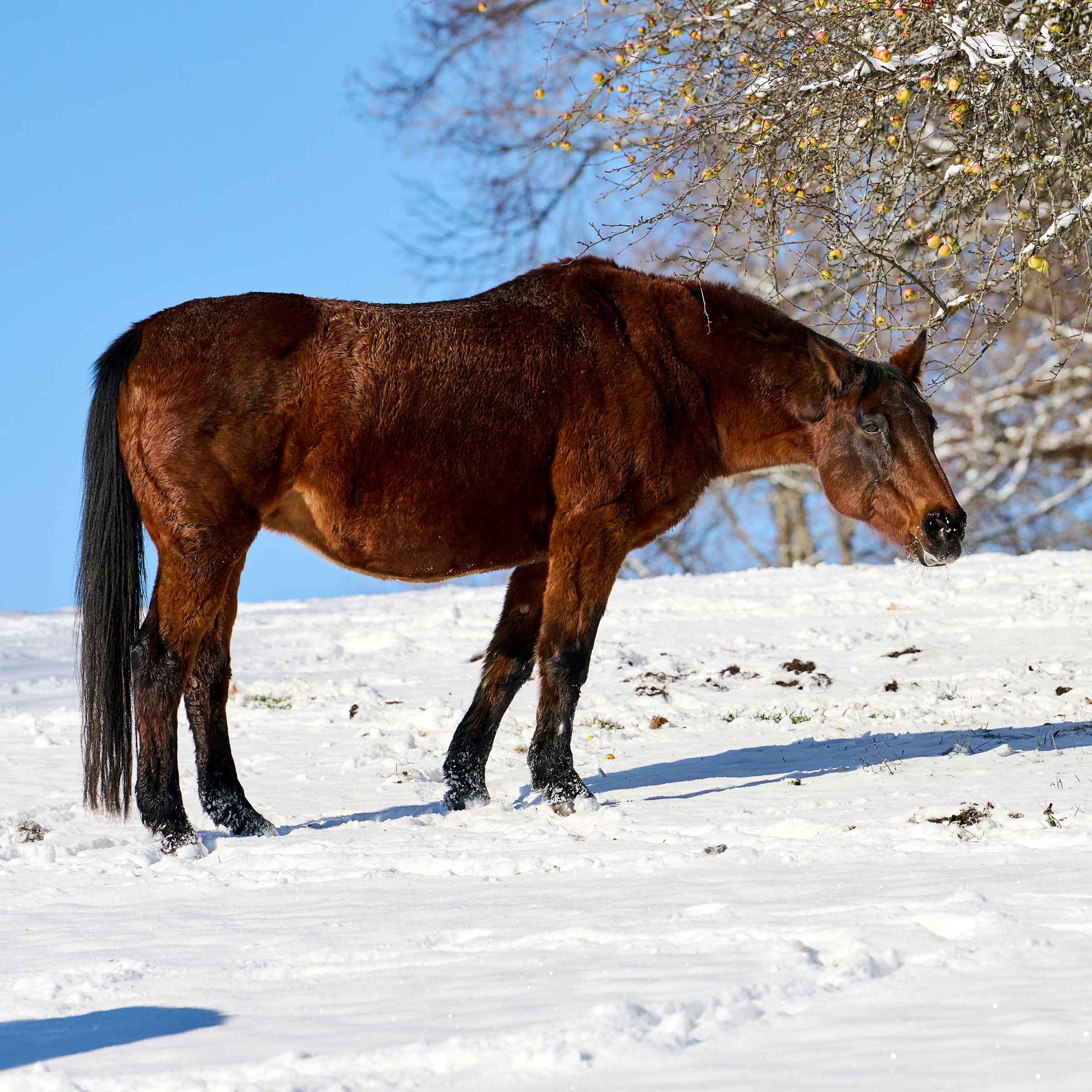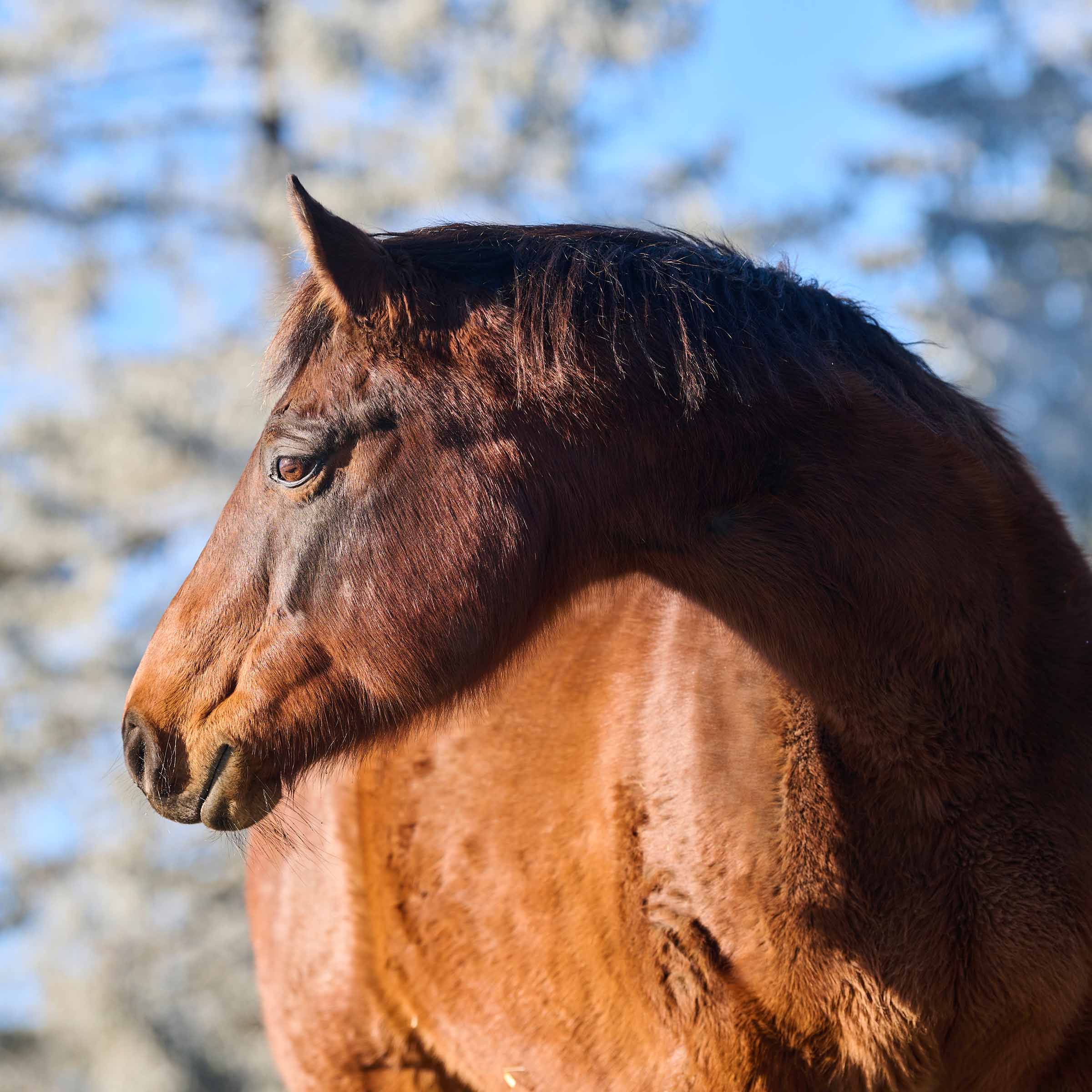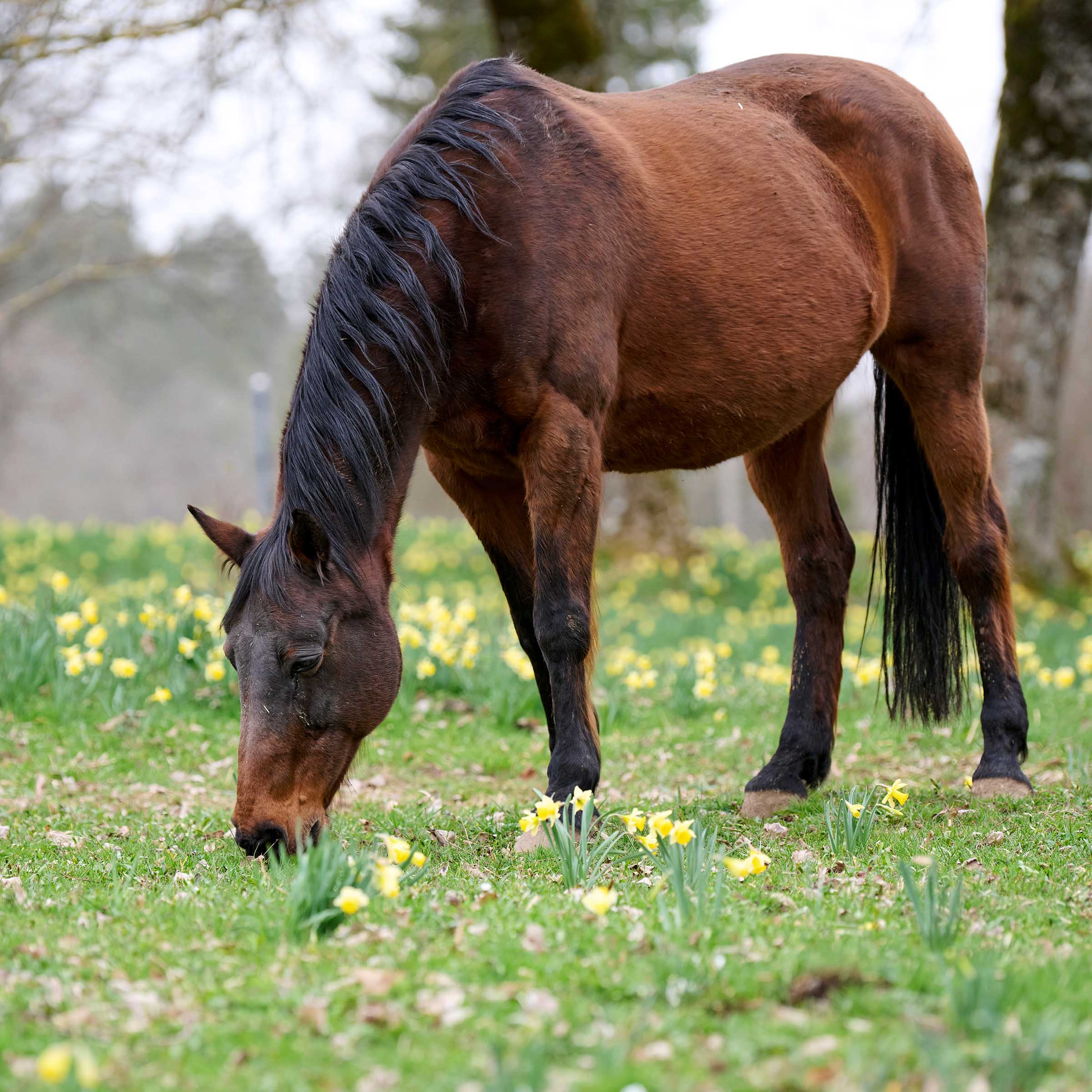 Die letzte Besitzerin von Pin Up Royale lernte das Pferd kennen, als es im Alter von vier Jahren auf eine Schweizer Reiterschule kam. Die Stute (mit einer zweifellos schwierigen Jugend) biss und wollte so wenig wie möglich mit Menschen zu tun haben. Im Jahr 2018 beschloss die Dame jedoch Pin Up Royale zu kaufen, damit die Stute ihr Leben nicht als Reitschulpferd beenden musste. Durch Liebe und Geduld gewann ihr Pferd Vertrauen in Menschen und wurde ruhiger. Pin Up Royale leidet an Arthrose in den Halswirbeln und Spat am rechten Hinterbein. Sie kam im November 2023 zu uns. Wir wurden gewarnt, denn die Stute ist weder mit ihren Artgenossen noch mit Menschen einfach. Dennoch ist zu erwähnen, dass Pin Up ihre Box sauber hält und nur in eine Egge äpfelt.