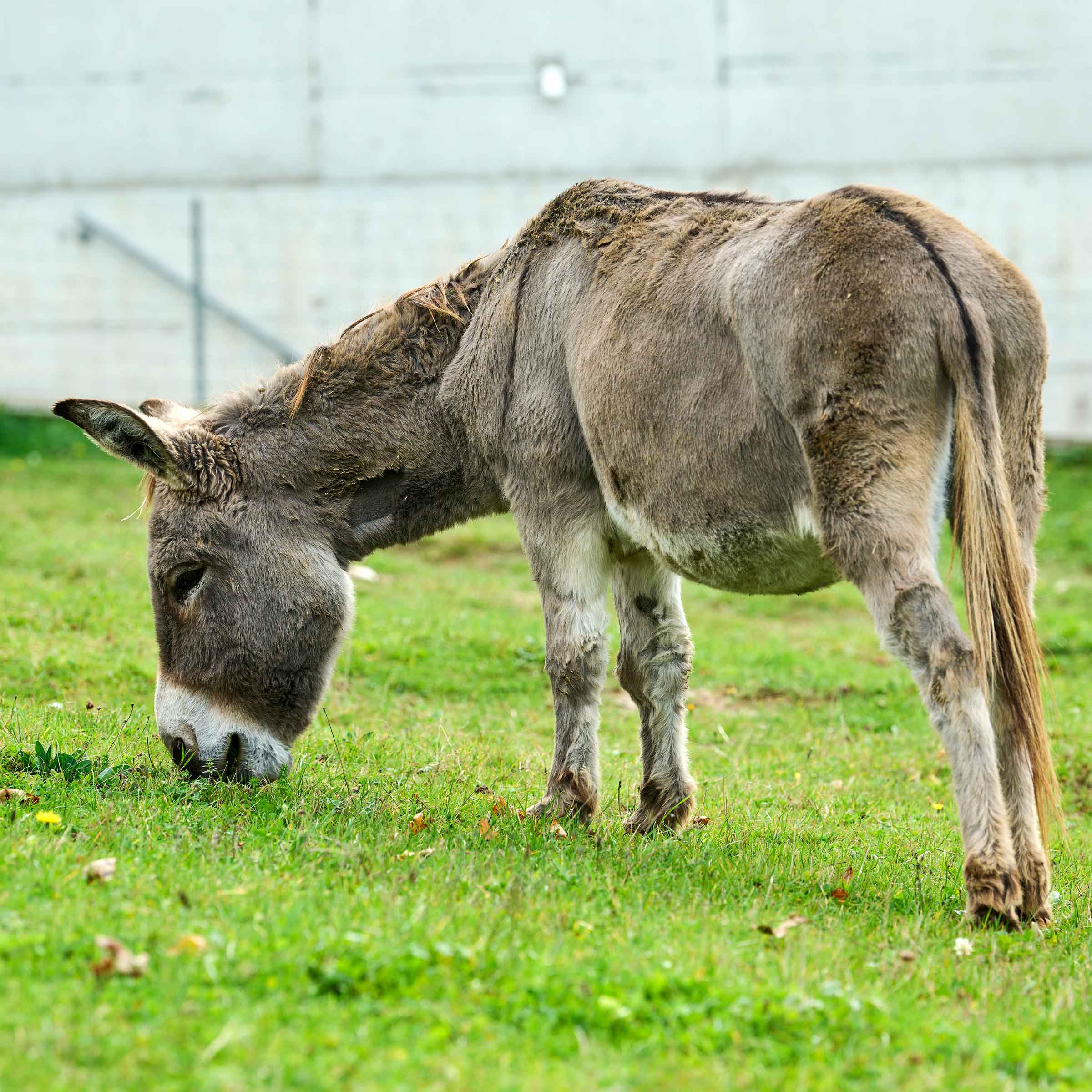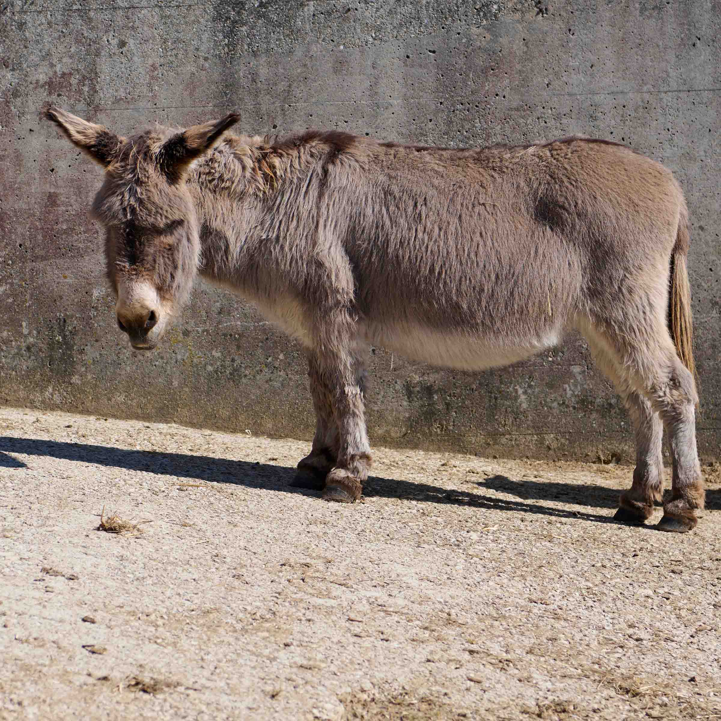 Ringgi ist ein kleiner, grauer Esel, der am 22. Juni 2000 geboren wurde. Er hat immer mit seiner Mutter Nja zusammengelebt und die beiden wurden im Jahr 2000 von einer Dame gekauft. Im Juli 2001 kam Pippo, ein weiterer Sohn von Nja, dazu. Mutter und Söhne blieben bei derselben Besitzerin, bis sie zu uns kamen. Regelmässig wurden sie spazieren geführt oder vor einen kleinen Wagen gespannt. Das Trio besuchte auch die Kinder im Kindergarten und begleitete sie beim Grillen im Wald. Alle drei Esel mochten Schnee, was sehr unüblich ist. Nach dem Tod ihres Besitzers nahmen wir Pippo, Ringgi und Nja im November 2021 als Notfall in unserer Station Maison Rouge auf. Wie es bei Eseln oft der Fall ist, erfolgte die Integration sanft und ohne viel Aufsehen. Uns sind keine gesundheitlichen Probleme bei diesem kleinen, freundlichen Esel bekannt.