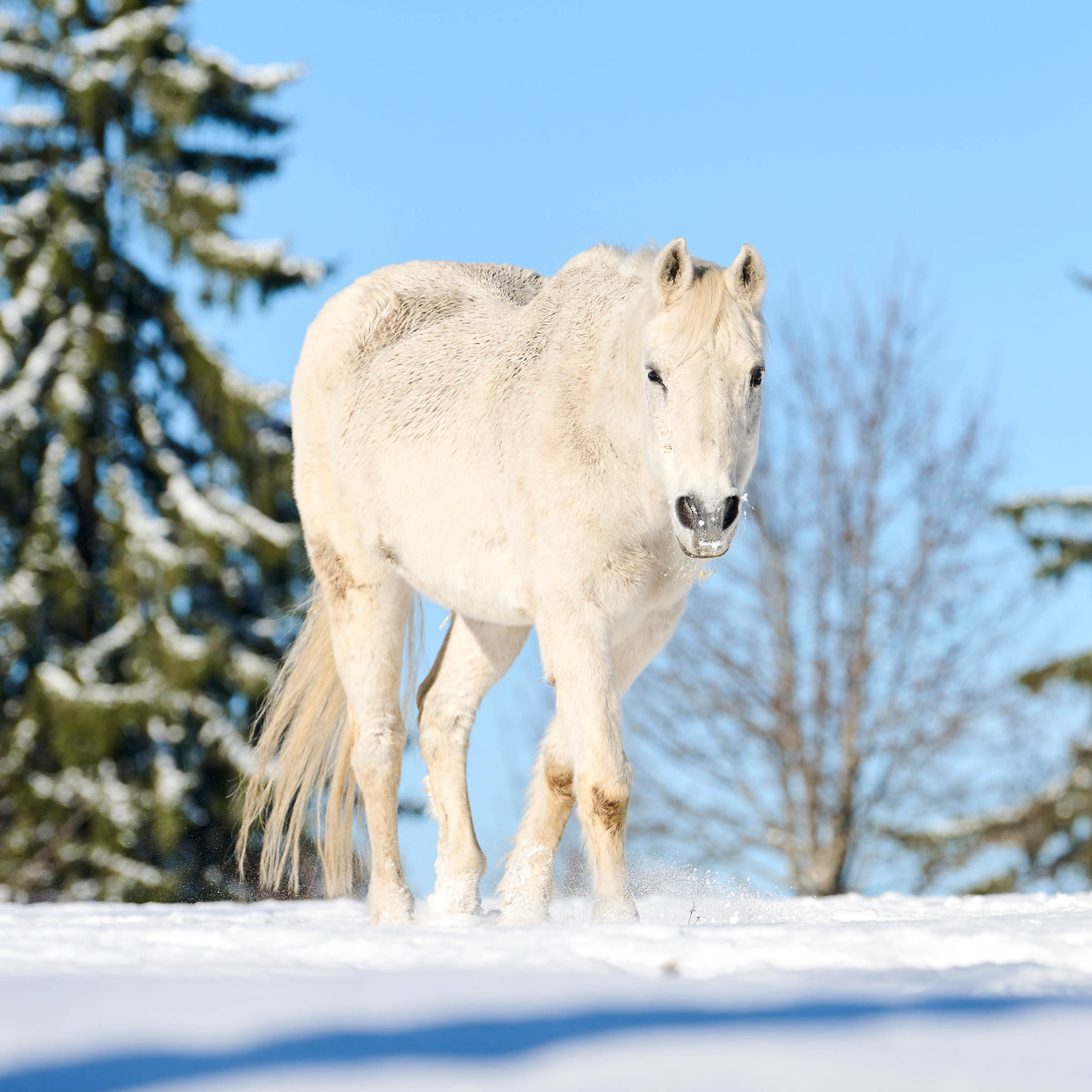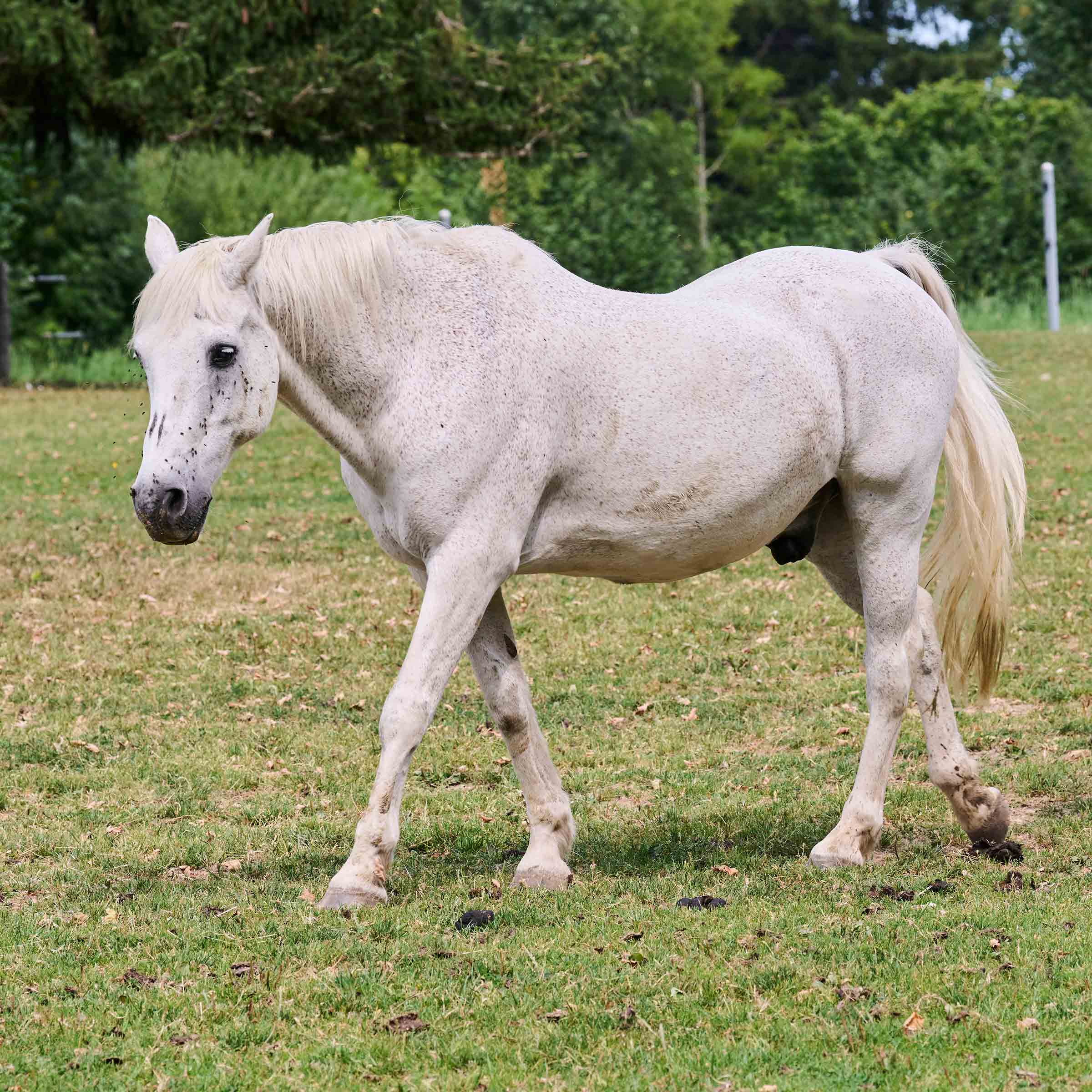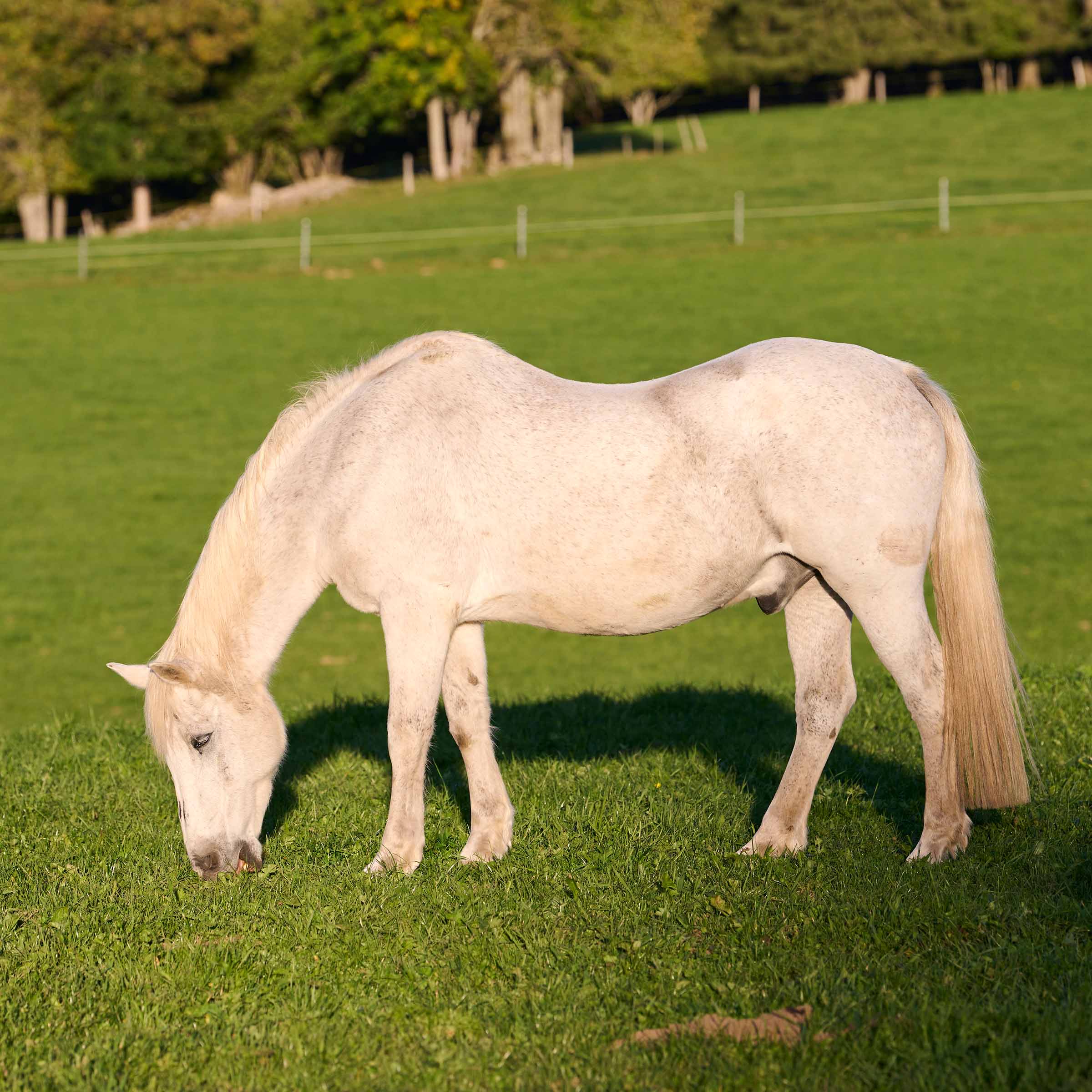 Der Schimmel-Wallach wurde in Irland geboren und als Vierjähriger von einer Reitschule in der Schweiz angekauft. Hier entwickelte sich der verlässliche Shandy zu einem beliebten Kinderpony und lernte auch seine zukünftigen Besitzerinnen (Mutter und Tochter) kennen. Ihnen war das Connemara Pony mit den unwiderstehlichen schwarzen Knopfaugen über viele Jahre hinweg ein treuer und motivierter Begleiter. Ende Februar 2020 durfte Shandy sein neues Zuhause auf dem Jeanbrenin beziehen. Während er sich Menschen gegenüber äusserst freundlich verhält, vermag er zu seinen pferdigen Kollegen nur zögerlich Kontakt knüpfen. Erste zarte Freundschaftsbande scheinen sich aber zu entwickeln.