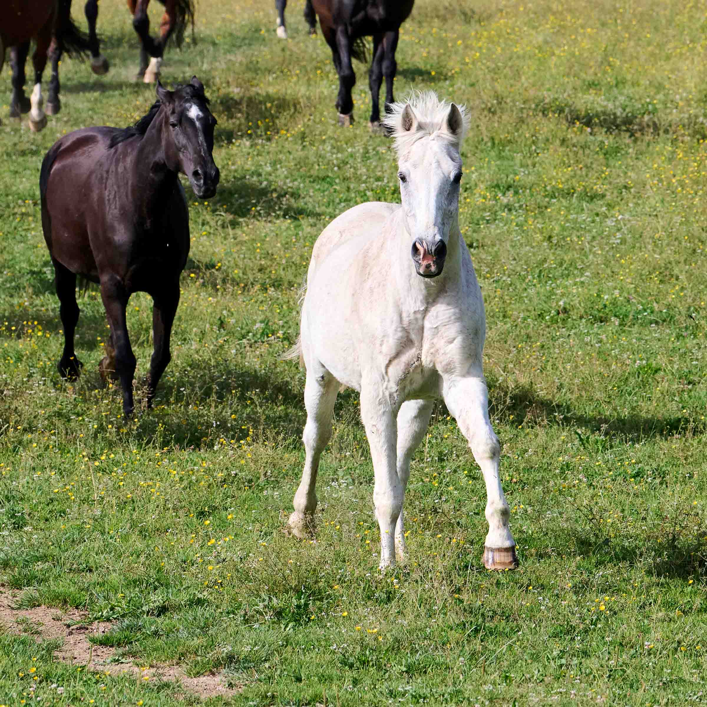 Ti Ponch wurde 2007 von seiner letzten Besitzerin gekauft, als Sie auf der Suche nach einem Turnierpferd war und sich nach einem Proberitt in ihn verliebte. Im Tessin nahm das Paar an Dressur- und Springwettbewerben teil und erlangte die jeweiligen Lizenzen sowie hervorragende Platzierungen. Im Jahr 2015 musste sich die Dame von ihrem Pferd trennen und gönnte ihm den Vorruhestand im Jura, bevor sie es bei der Stiftung anmeldete. So kam Ti Ponch am 12. Dezember 2020 zu uns. Der nette, unkomplizierte Wallach ist nicht dominant, weiss sich aber bei seinen Artgenossen Respekt zu verschaffen. Das Leben auf der Weide und in einer Herde passt perfekt zu ihm. Trotzdem hat er die schlechte Angewohnheit beibehalten, mit dem Kopf zu pendeln, zu «weben», wenn er sich in seiner Boxe befindet.